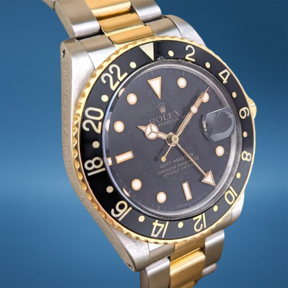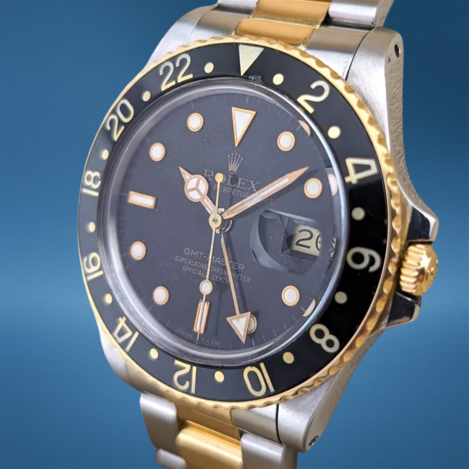 ROLEX GMT-MASTER 40MM YELLOW ROLESOR 16753 AUTOMATIC BLACK DIAL WXO & COA