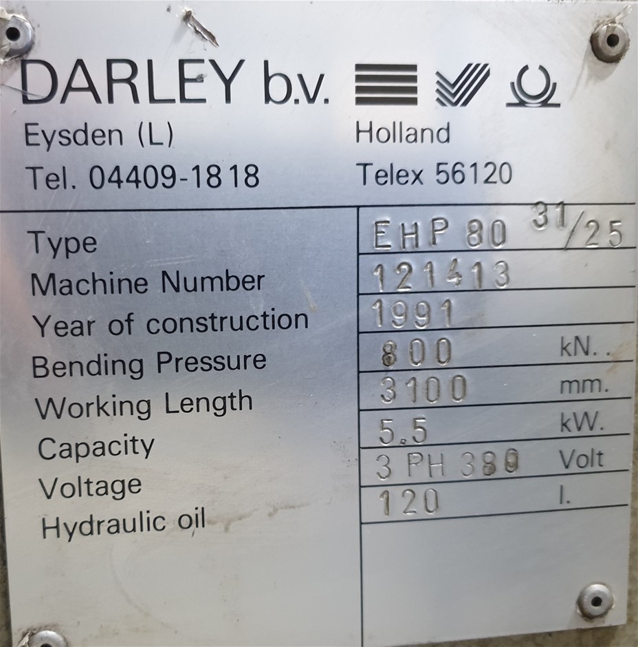1991 Darley EHP80 Bending Press