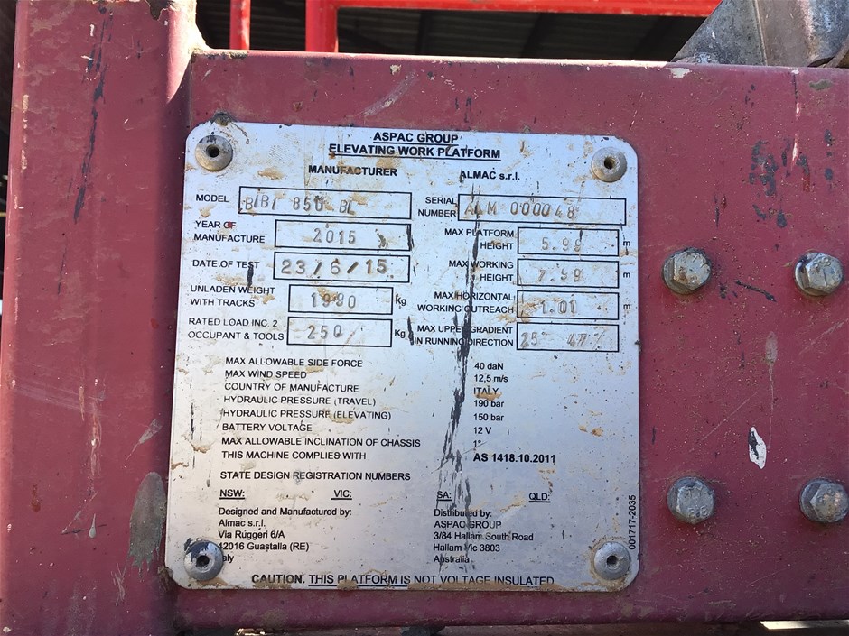 2015 Almac BIBI 850-BL Tracked Scissor Lift
