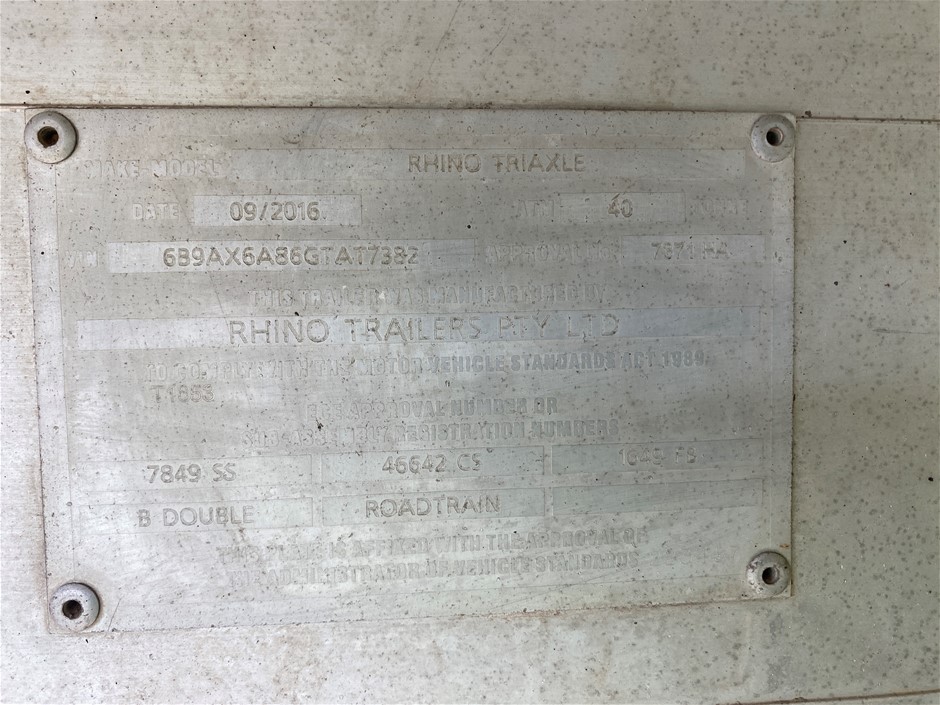 2016 Rhino Tri-Axle B Double Aluminium Grain Trailer Combination