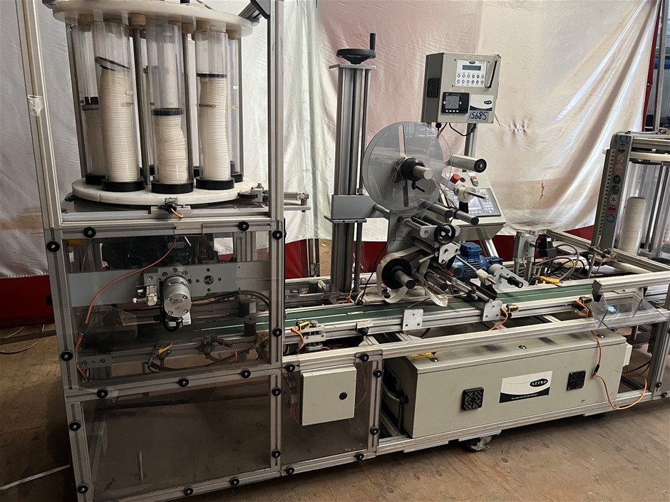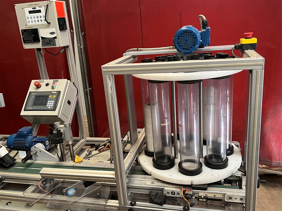 This is a Top Labeller and is designed to place a label on the lid used on coffee cups.