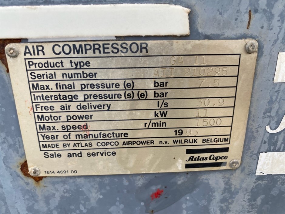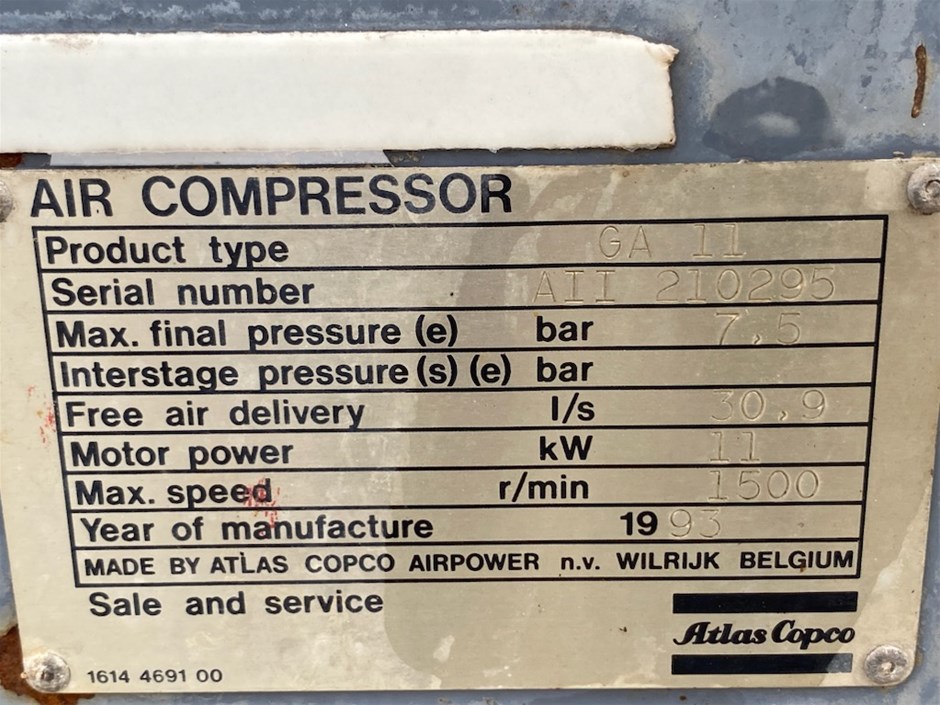 • Comments: Product Type: GA 11Motor Power: Kw 11Max Speed: 1500 r/min