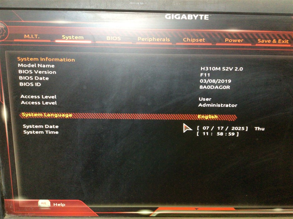 • No Hard Drive, Bios year: 2019, Model: H310M S2V 2.0, Intel core i5