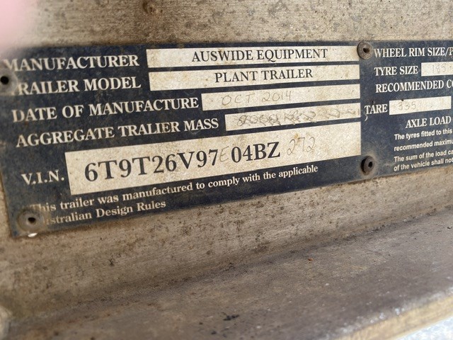 2014 Auswide Equipment Excavator Plant Trailer