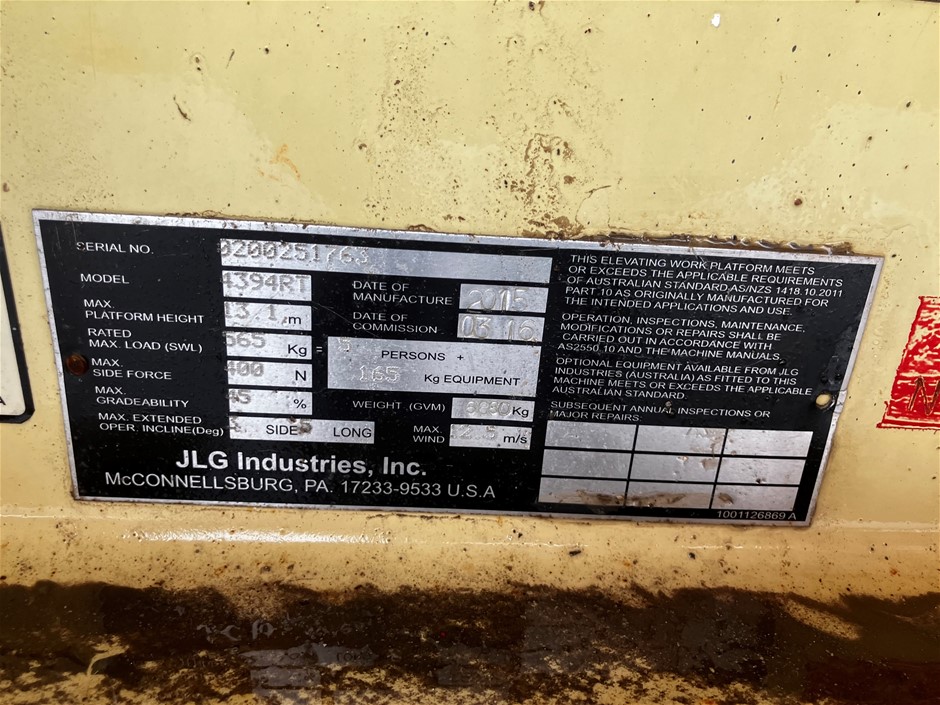 2016 JLG 4394RT Scissor Lift - 43ft (13.0m) - Diesel - MDG15