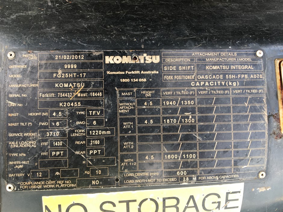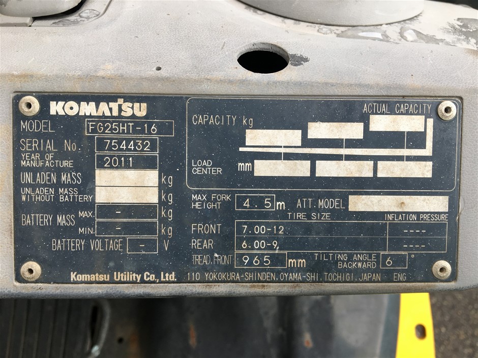 2012 Komatsu FG25HT-17 Forklift - 2.5t - 3.0m - LPG