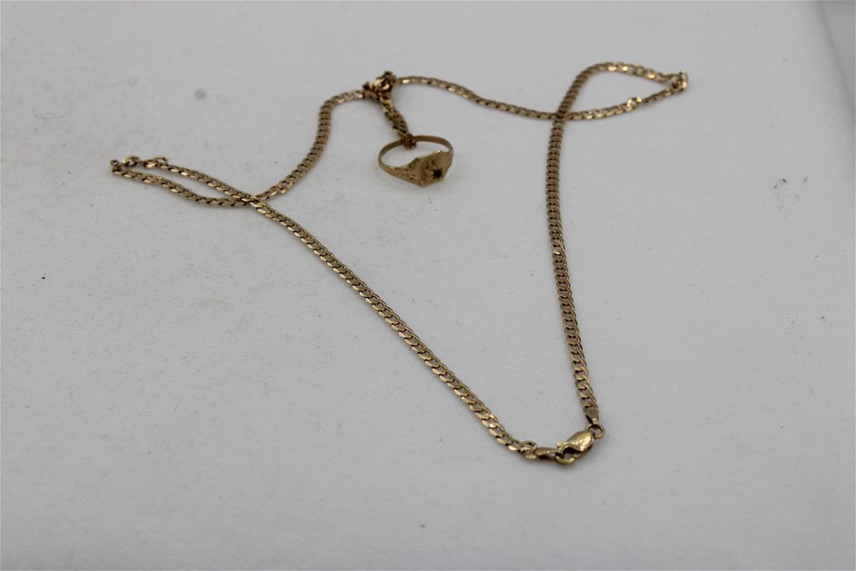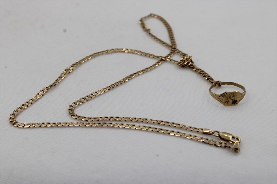 Stamped 9ct Yellow Gold Chain with Signet Ring
