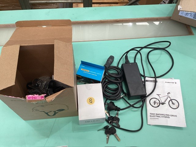 • Fortis Branded Electric Mid-Drive Hybrid Mountain Bike With Helmet, Padded Seat,Tool Bag,Headlight ,Charger, Keys And Box Of Accessories Located in IT Room In Warehouse