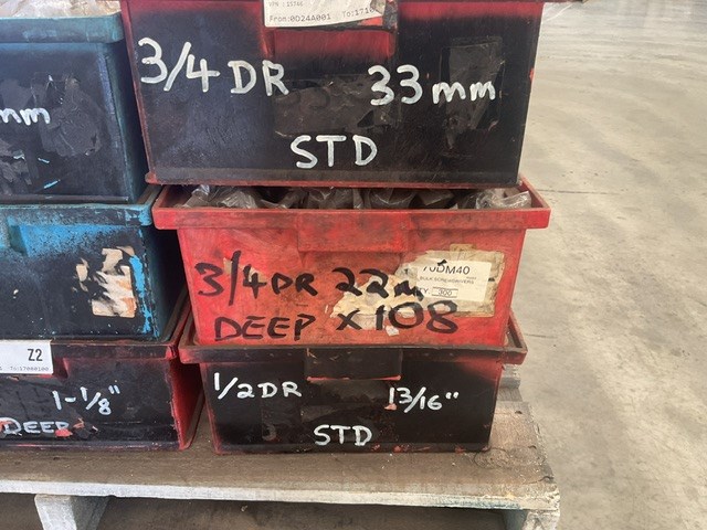 Includes 1/2”drive x 13/16” deep impact sockets, 3/4”drive x 15/16” deep impact sockets, 1/2” drive x 1-1/8” sockets, 3/4” drive x 2” sockets, 1/2” drive x 4/8” sockets, 3/4 drive x 1-1/16” sockets, 1/2” drive x 1-1/16 deep impact sockets, 1/2” drive x 15mm deep impact sockets, 3/4” drive x 1-3/16” sockets, 3/4” drive x 33mm sockets, 3/4” drive x 22mm sockets, 3/4” drive x 1-7/16” sockets, 1/2” drive x 1-1/8” deep impact sockets, 1/2” drive x 13/16” sockets, 1/2” drive x 9/16” deep impact sockets, 1/2” drive x 9/16” sockets, 1/2” drive x 5/8” deep impact sockets (919963-33)