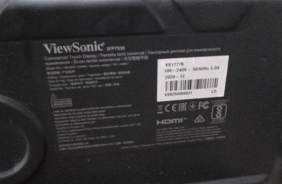 Qty 2 x ViewSonic IFP7530 75 Inch Commercial Touch Display Monitor