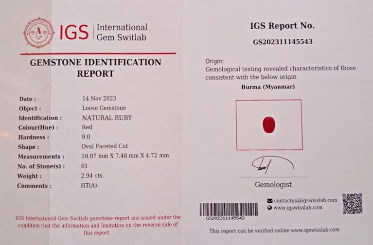 2.94ct Certified Burmese Ruby - Oval Faceted Cut