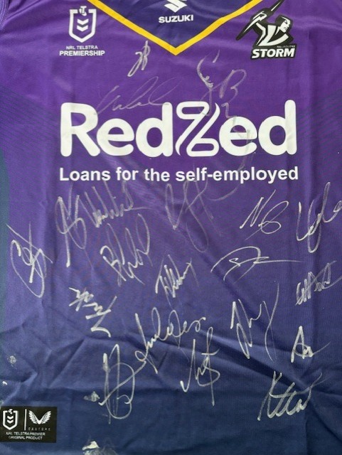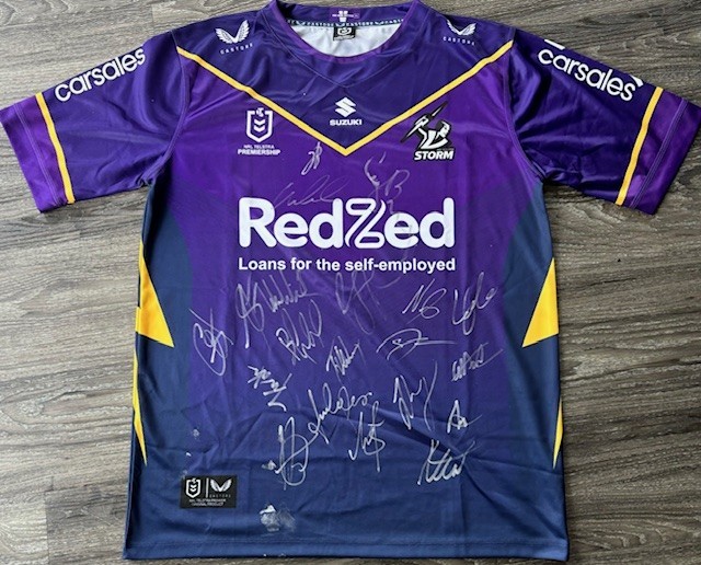 Melbourne Storm 2024 squad and coach Craig Bellamy signed jersey.