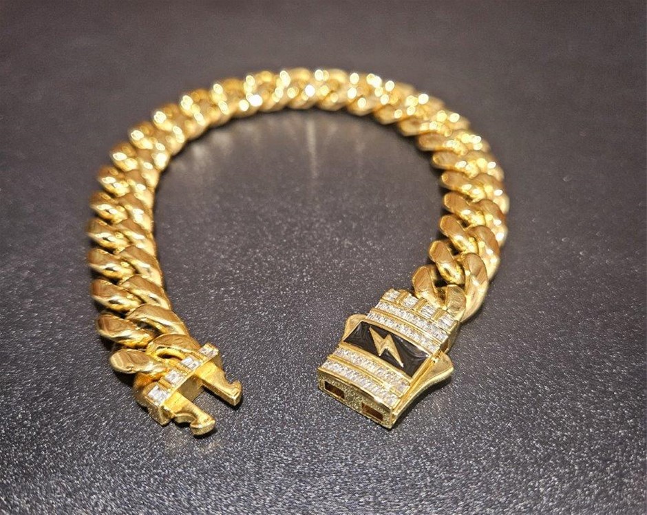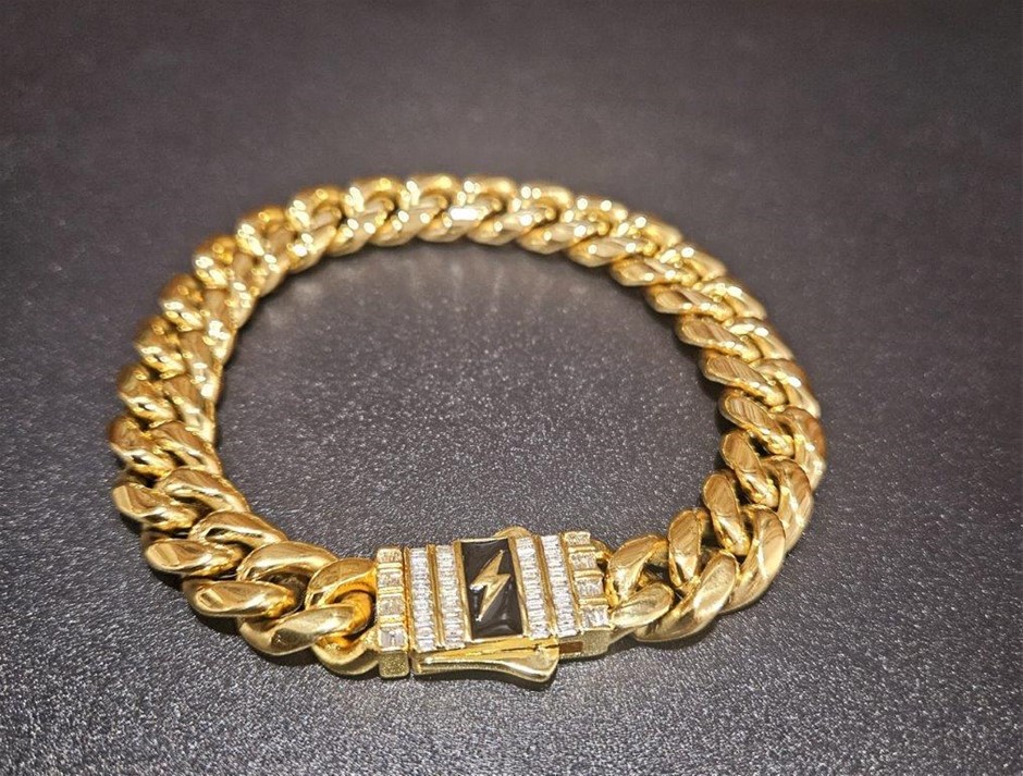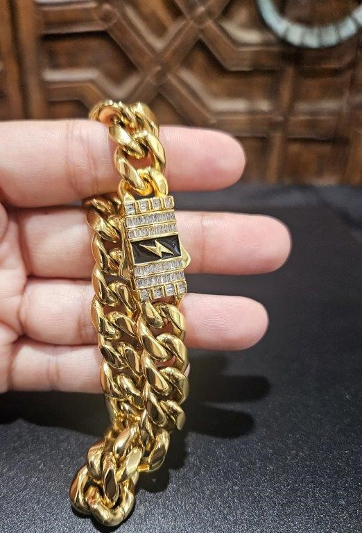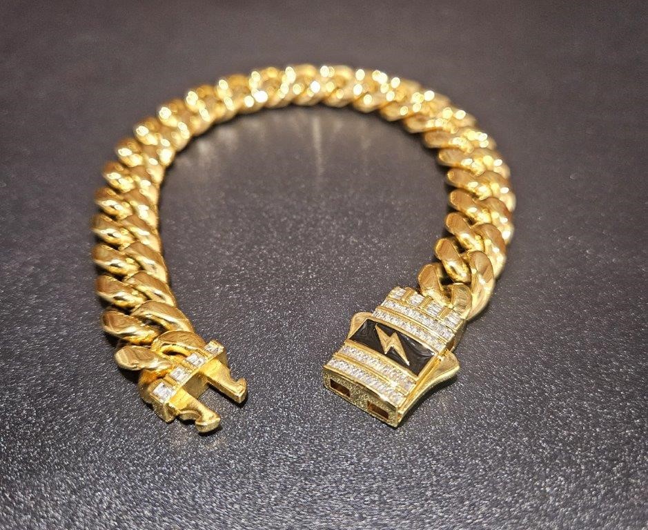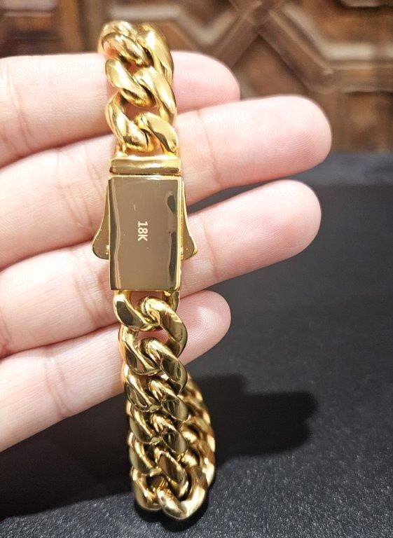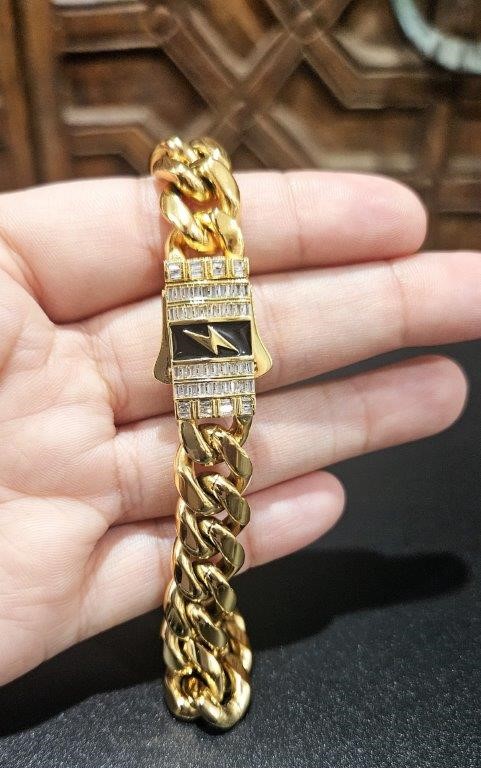 Italian 18k yellow Gold Filled Cuban bracelet with clasp lab simulated diamonds stone with 18k stamped