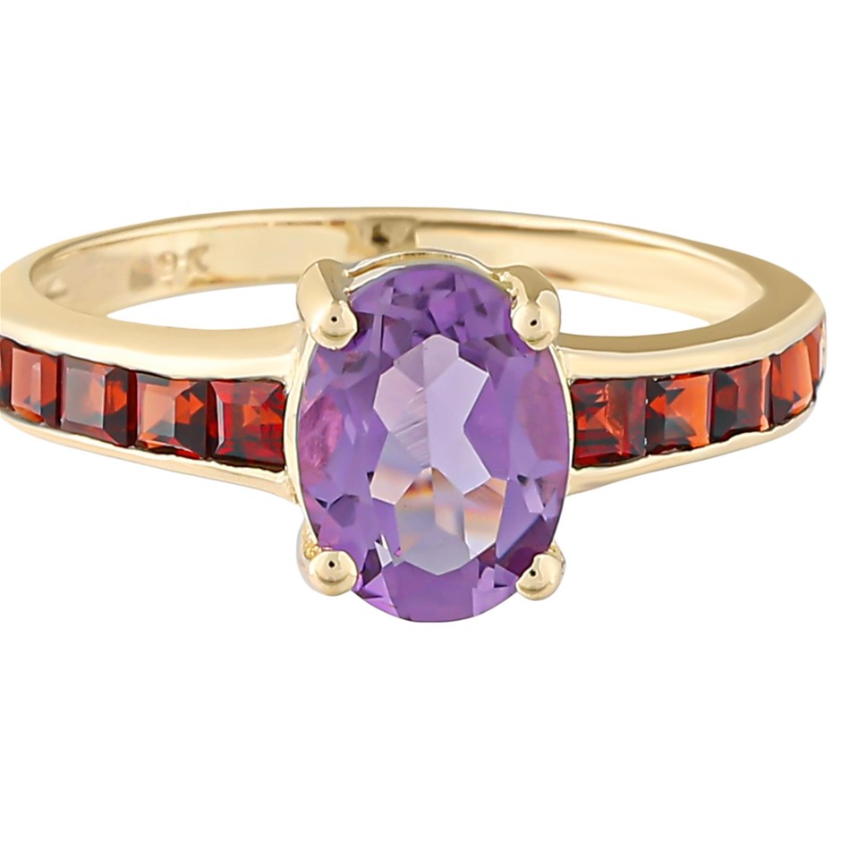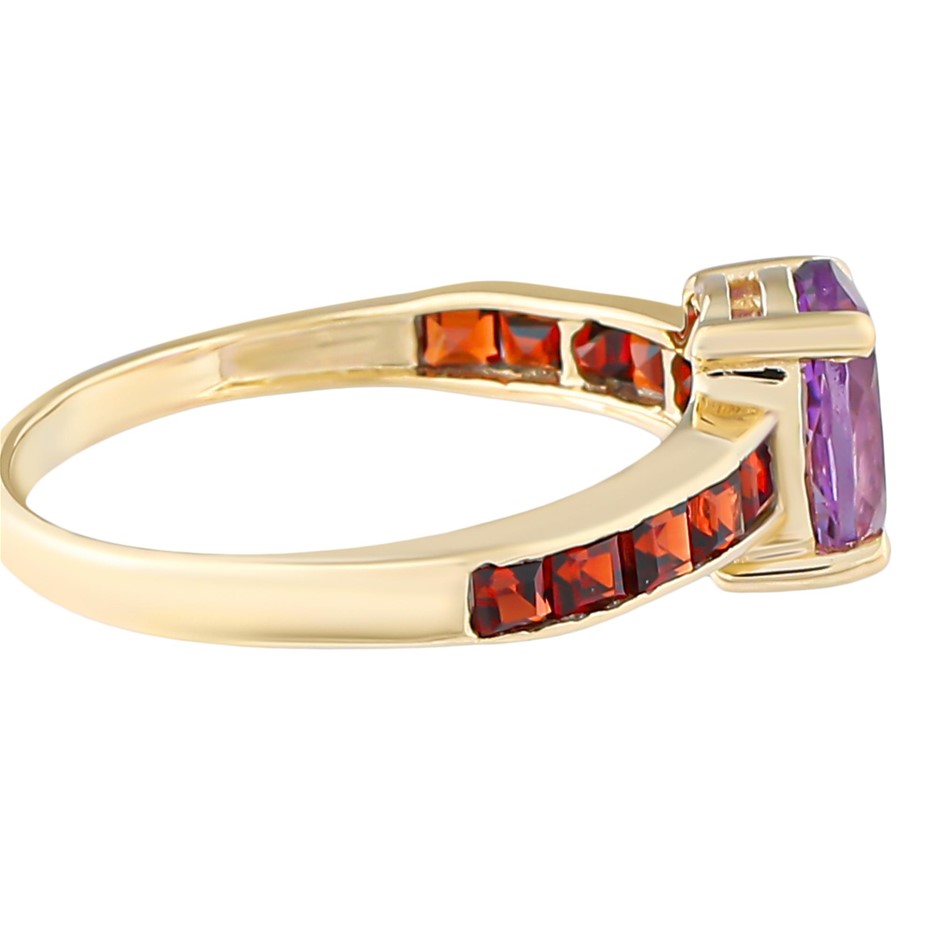 Yellow Gold Natural Amethyst / Natural Garnet Ring