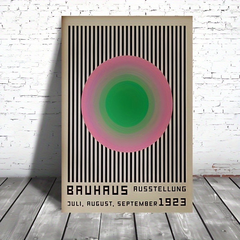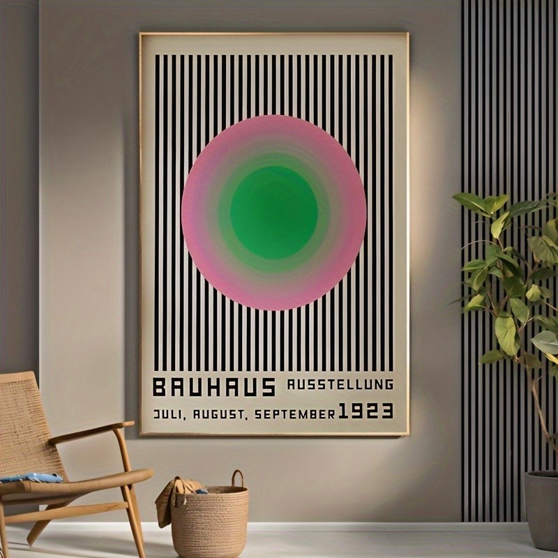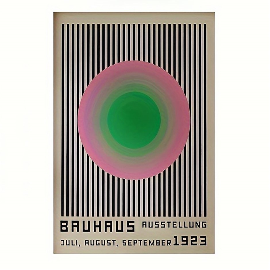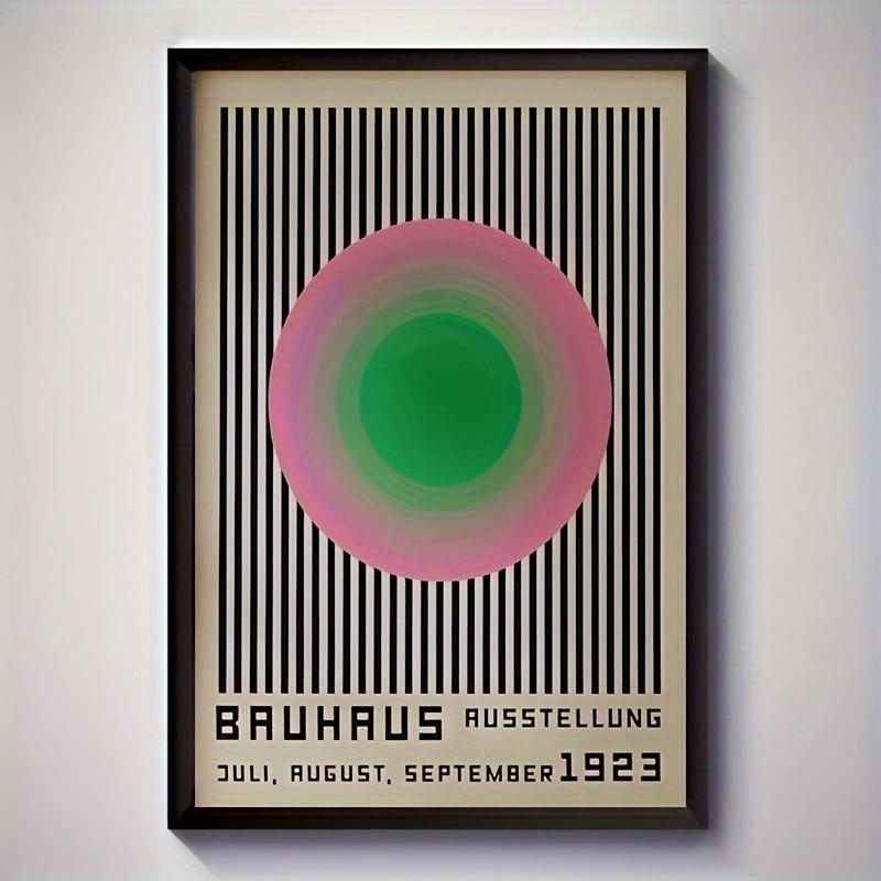 Bauhaus 1923 (After) Vibrant Green Pink ``CIRCLES & BLACK STRIPES`` Geometric Minimalist HD Canvas Print