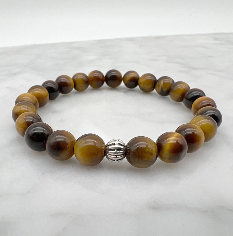 8mm Tiger Eye & Spacer Stretch Gemstone Beaded Bracelet Beaded Bracelet