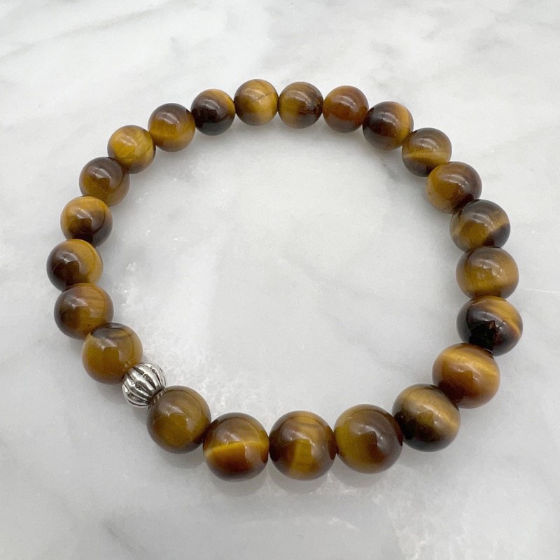8mm Tiger Eye & Spacer Stretch Gemstone Bracelet Bracelet