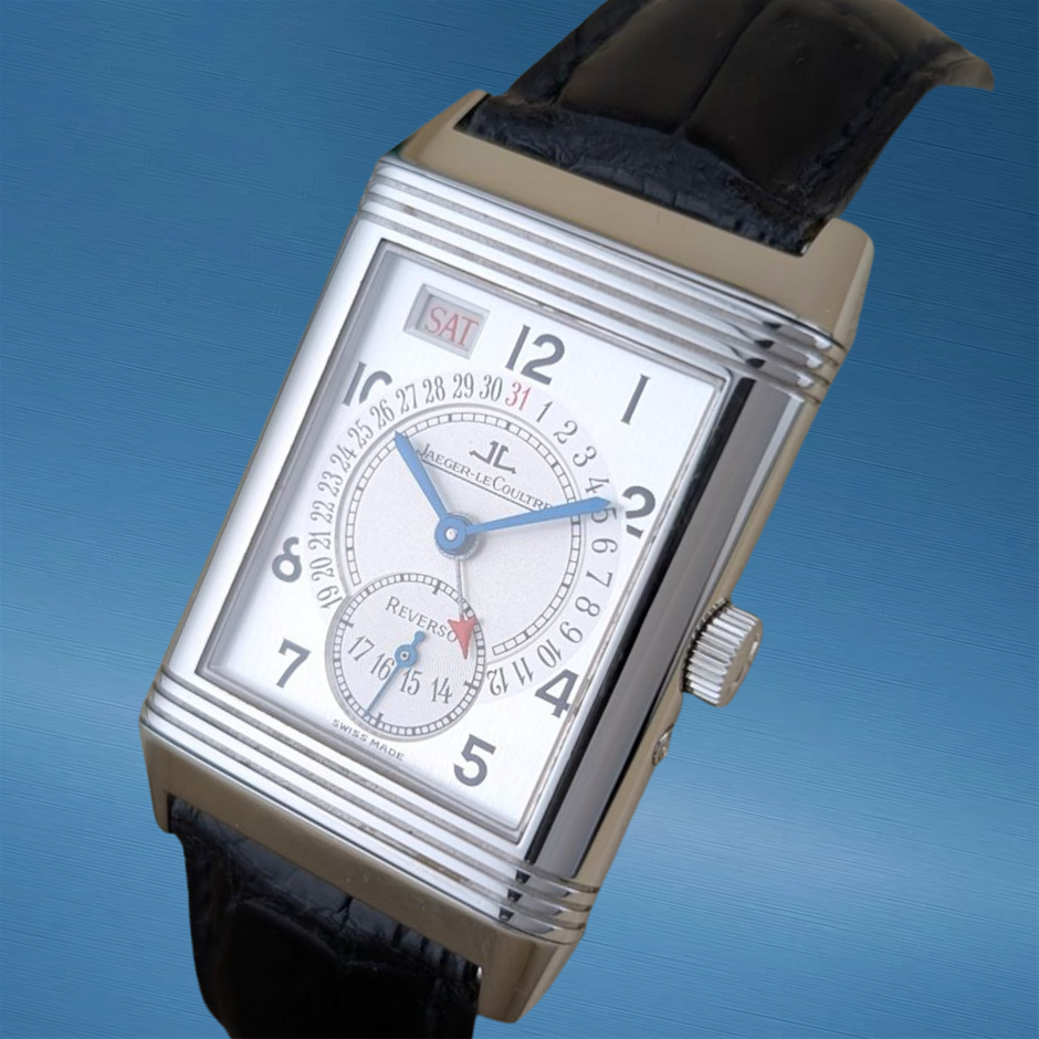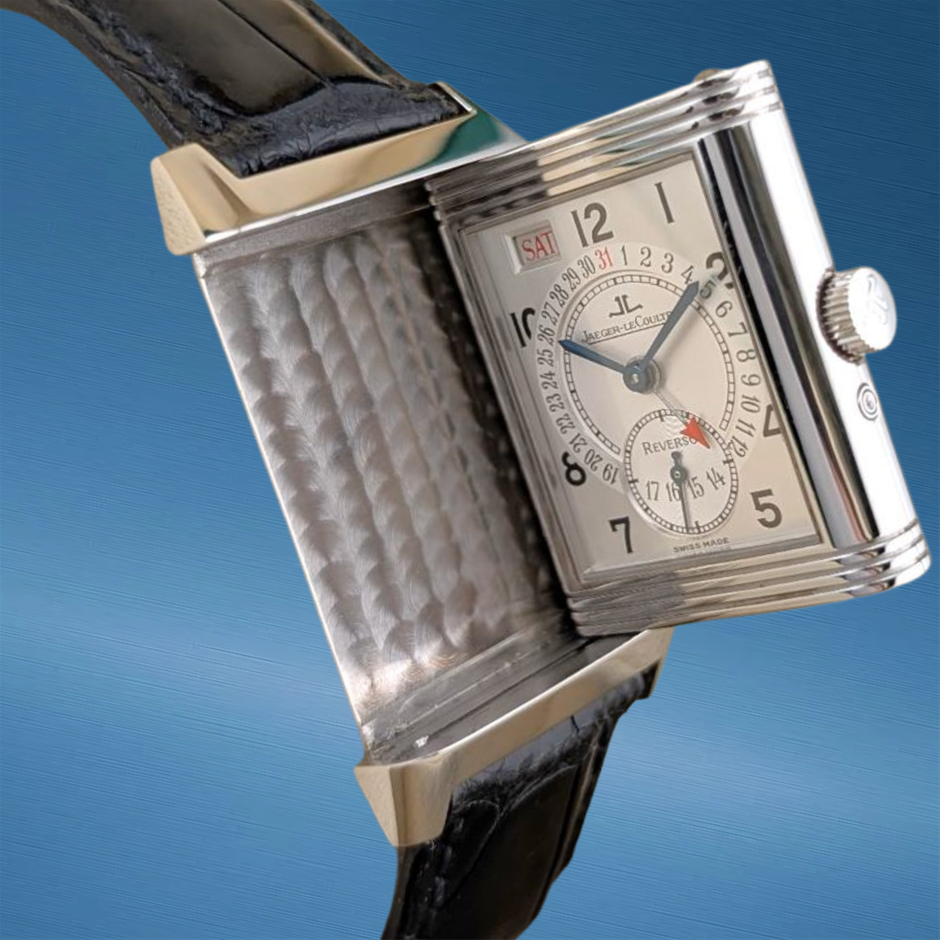 The Jaeger-LeCoultre Reverso Grande Taille 270.8.36 exemplifies the timeless Art Deco elegance that has defined the Reverso line since its creation. Its 26mm stainless-steel case features the signature reversible mechanism, allowing the watch to be flipped to protect the dial while showcasing the iconic gadrooned case design. The clean, rectangular dial layout with Arabic numerals and blued-steel hands reflects JLC’s commitment to refined simplicity and traditional craftsmanship. As one of the classic proportions within the Reverso family, this Grande Taille model offers a perfect balance of presence, elegance, and historical charm.