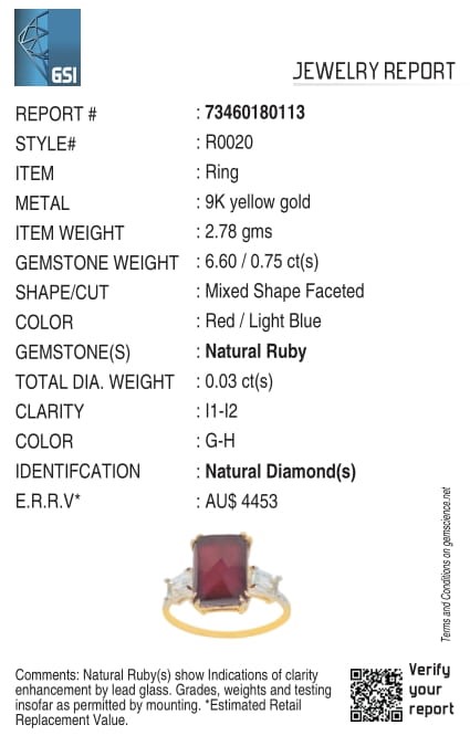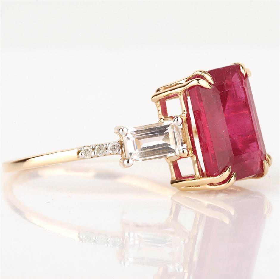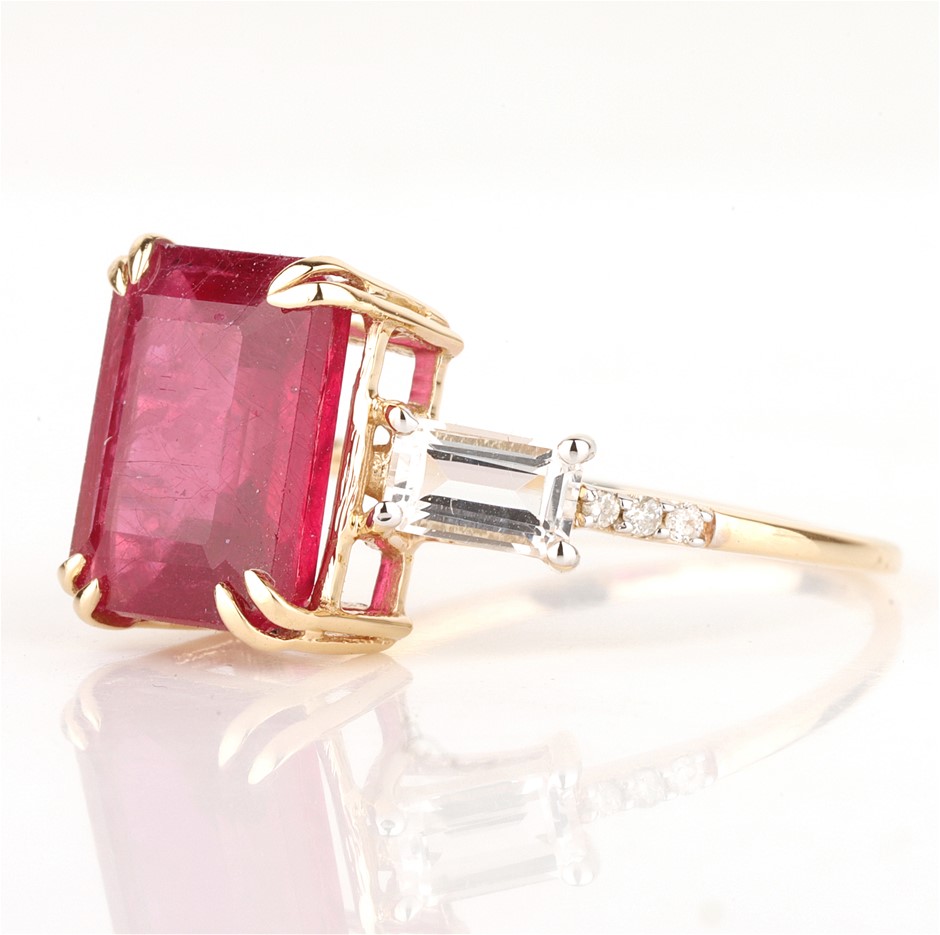 Yellow Gold Natural Ruby & Diamond Ring with Valuation