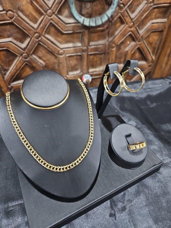 3pcs x 18KGF/Italy Stamped Yellow Gold Filled Chain & Ring & Earring-clearance sales