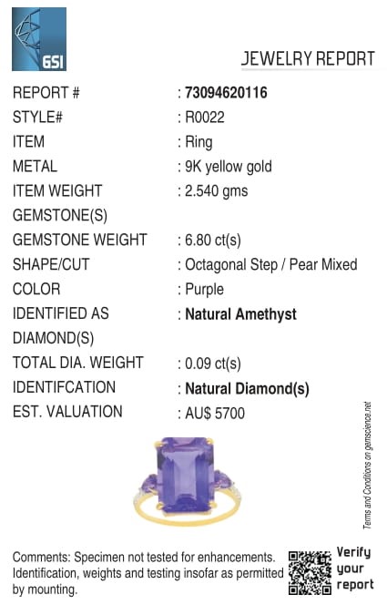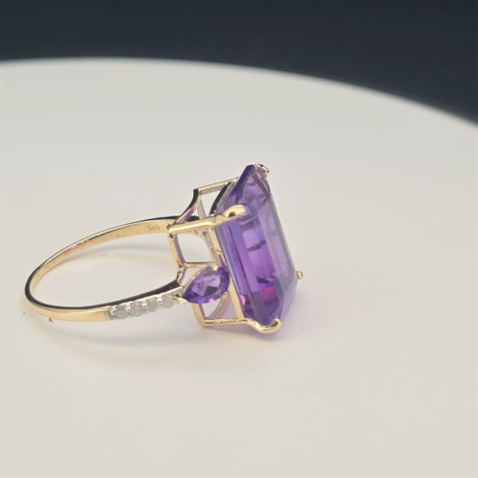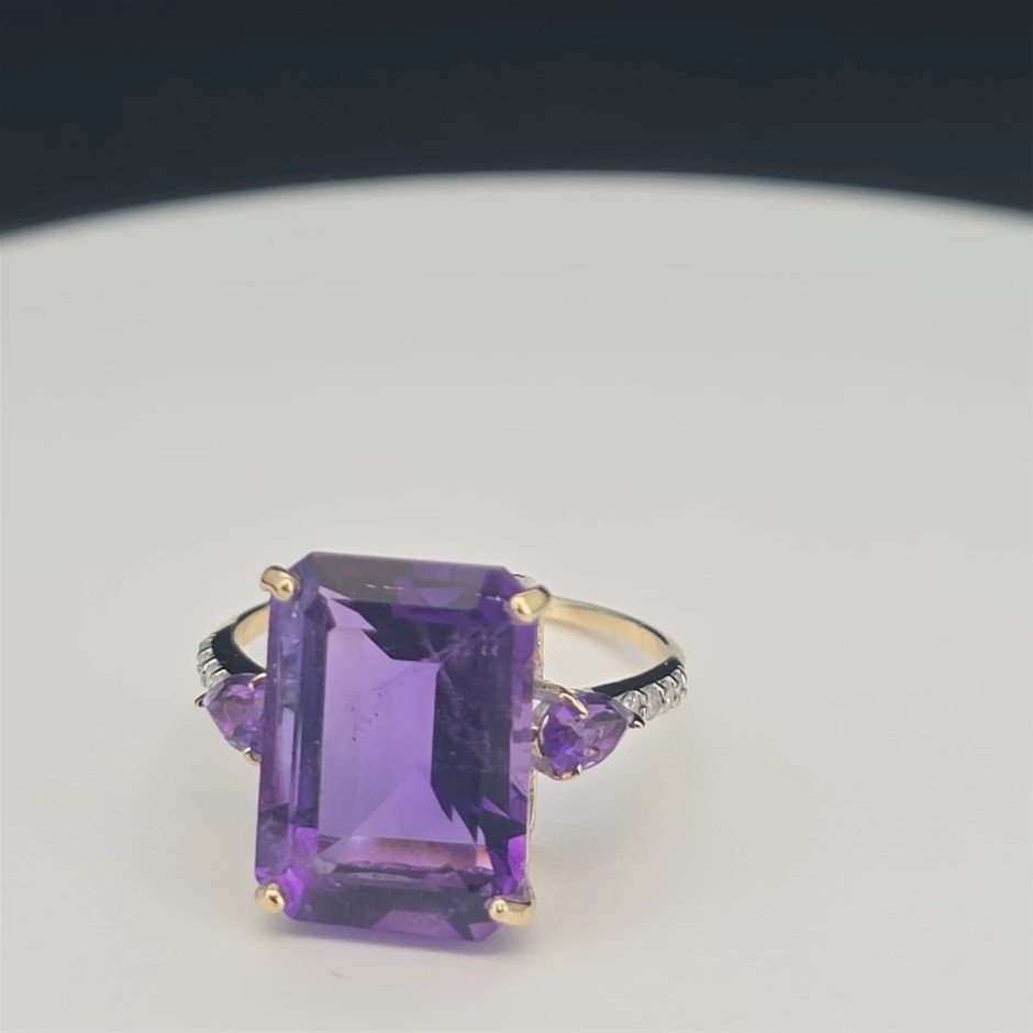 Yellow Gold Natural Amethyst & Diamond Ring with Valuation