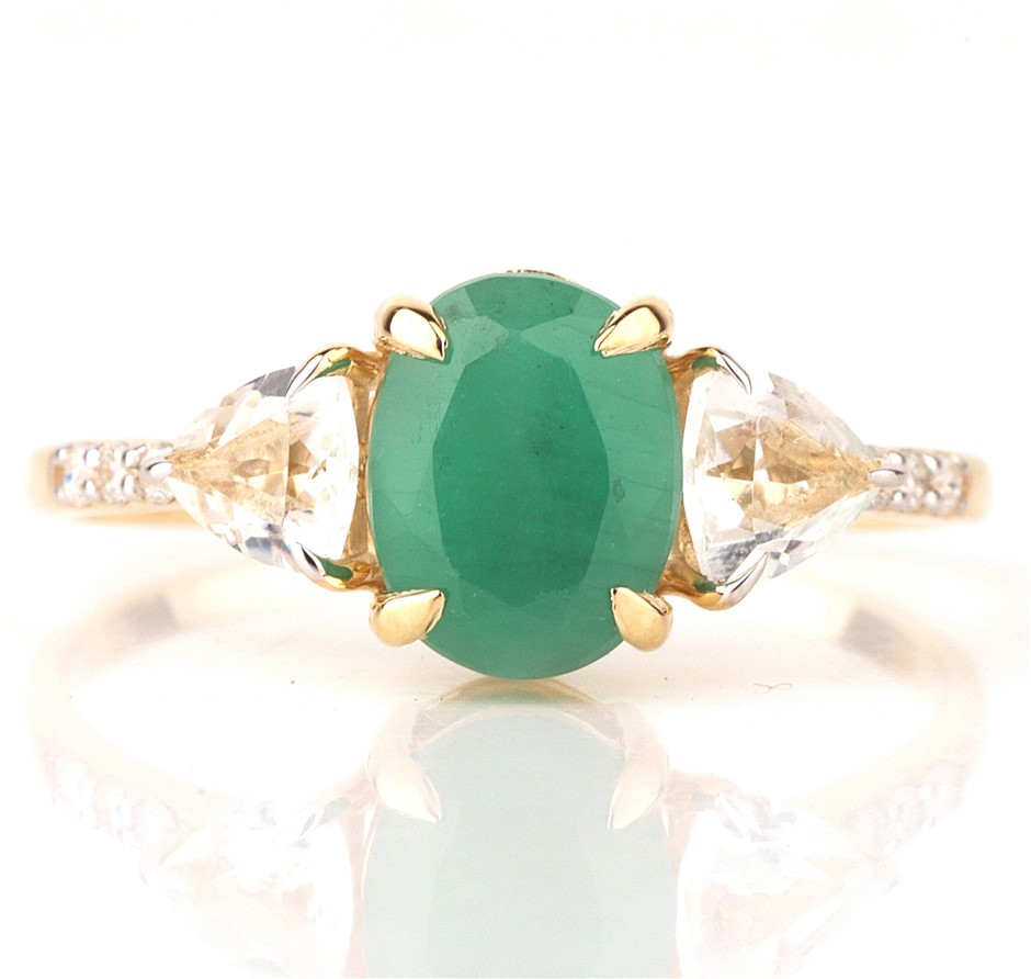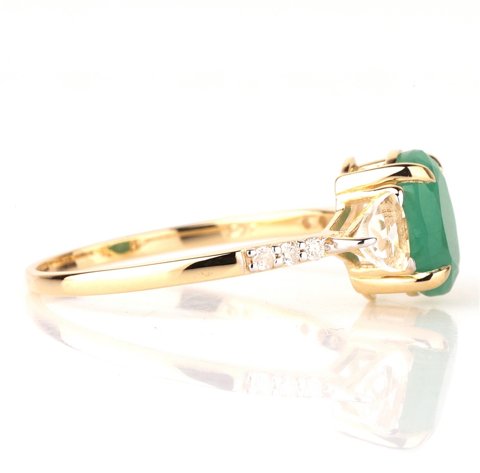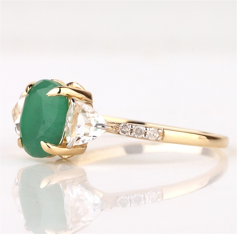 Yellow Gold Natural Emerald & Diamond Ring with Valuation