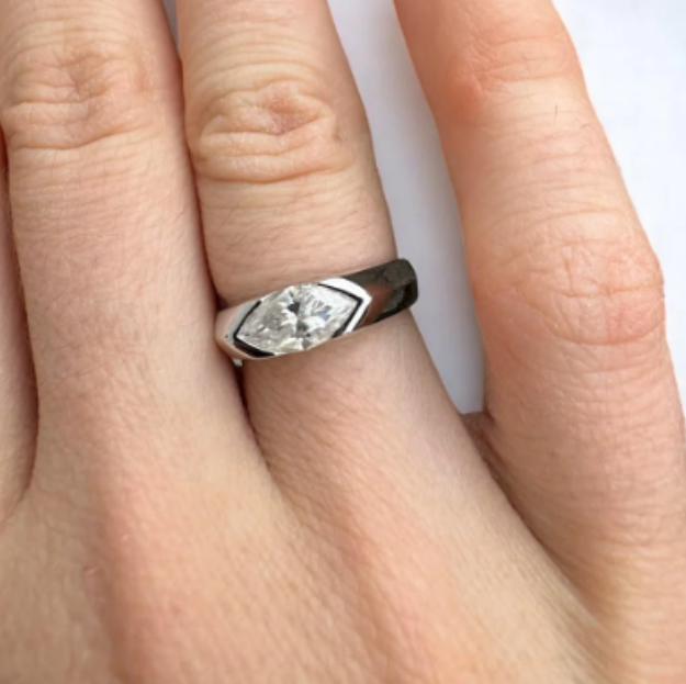 1ct Marquise Moissanite Mens Ring 18K Gold on Solid Sterling Silver
