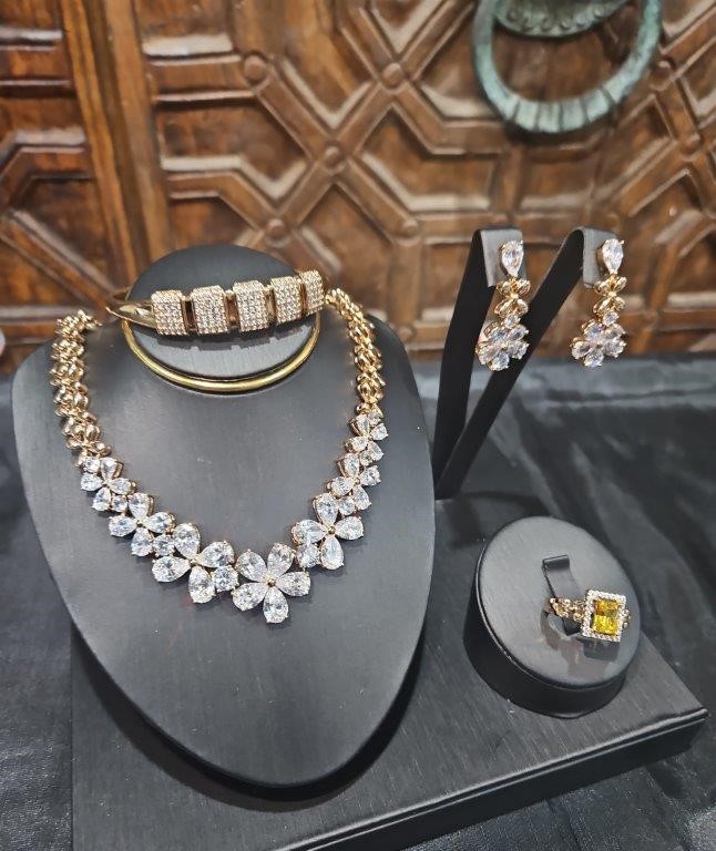 • Set Purple Simulated Diamonds Stones Tennis Necklace & Earrings & Ring (18kstamps) and one Bangle in PT950 stamps & One Watch fo women(orginal Box )