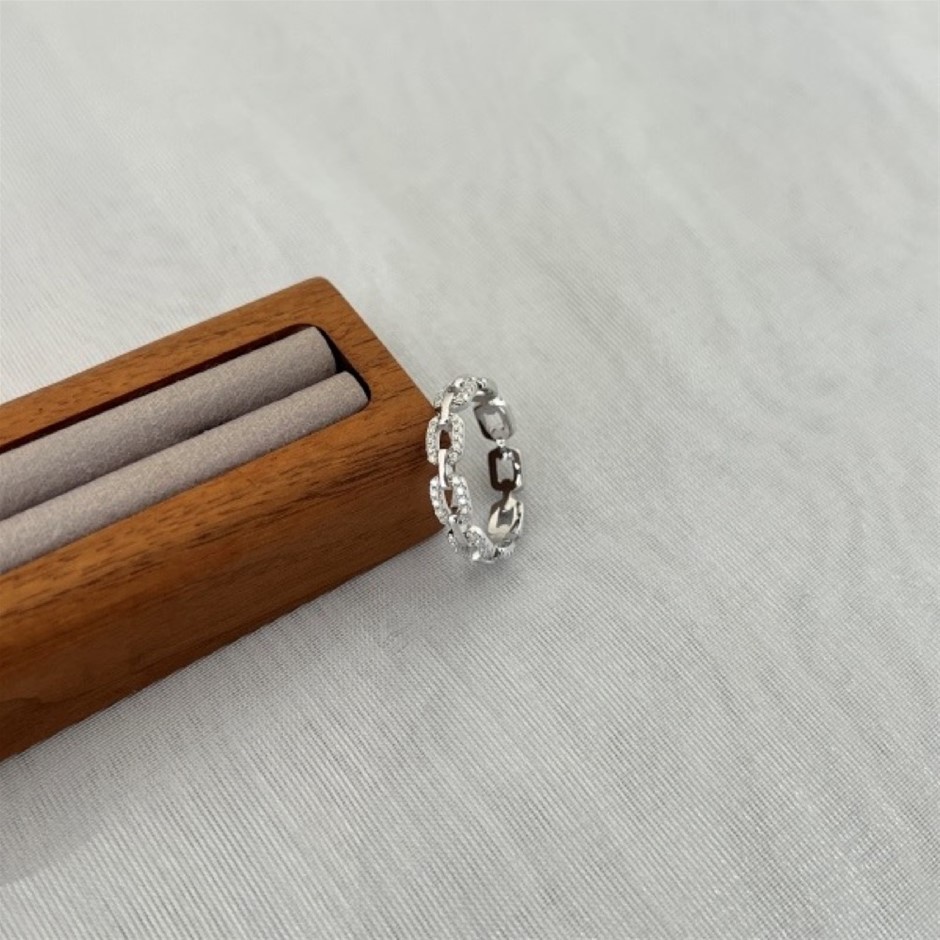 0.40ct GRA Certified Moissanite 925 Sterling Silver Link Ring - Size 7