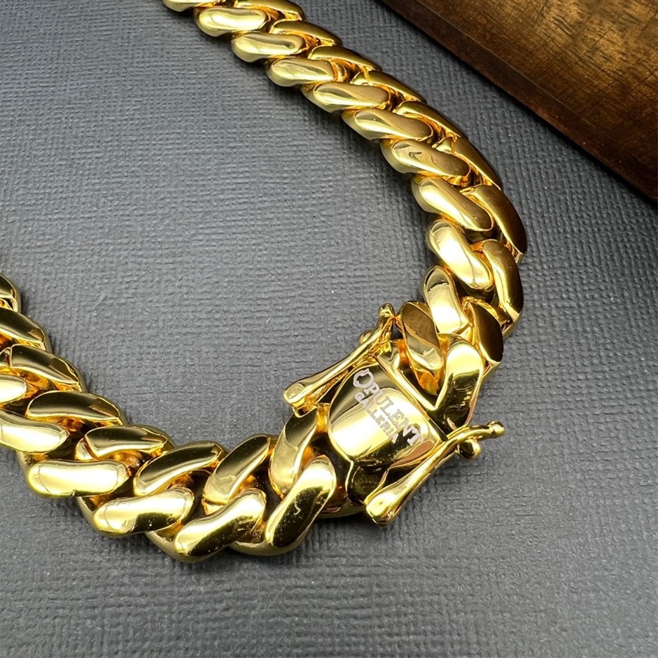 Opulent Galleria - 18K Gold-Filled Cuban Chain Necklace, 15MM Wide - 60.9cm