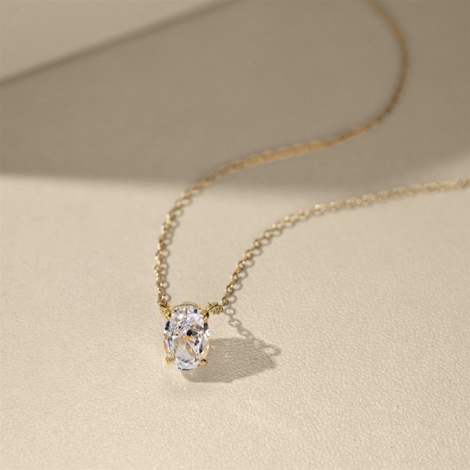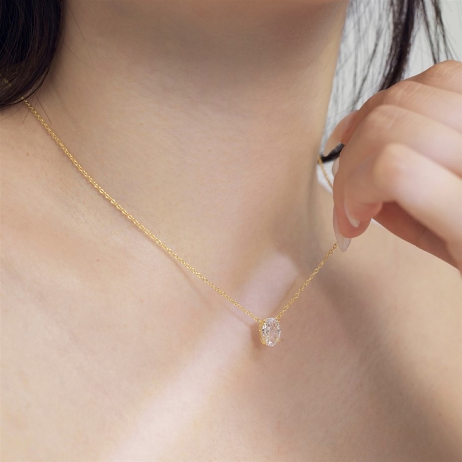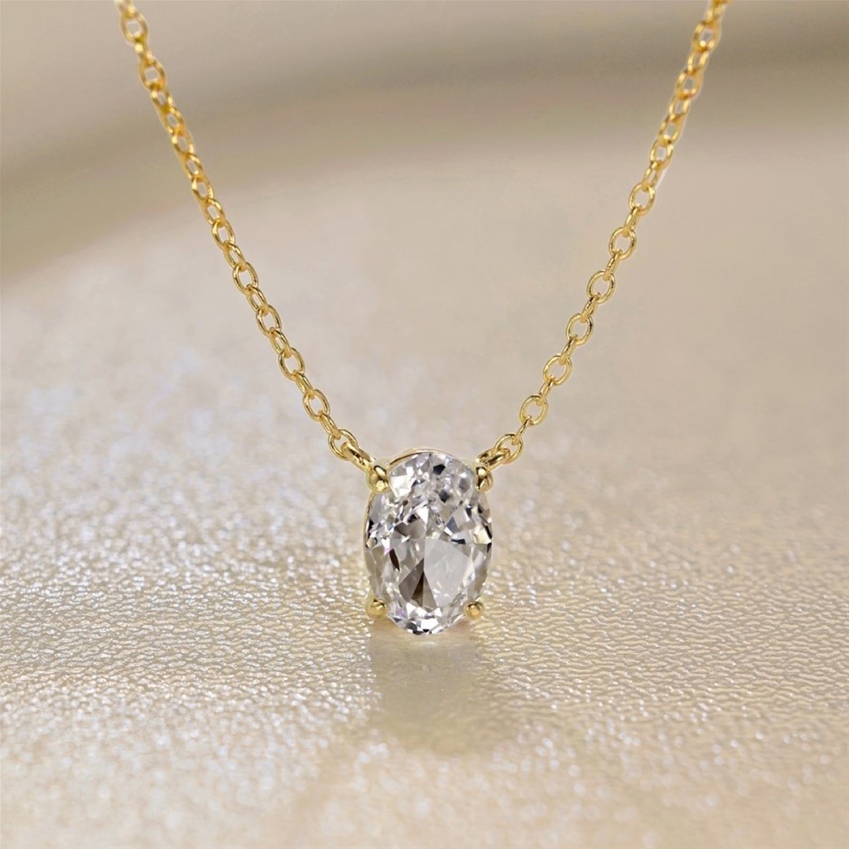 1.5ct 18K Gold Filled 925 Silver Simulated Diamonds Oval Pendant Necklace