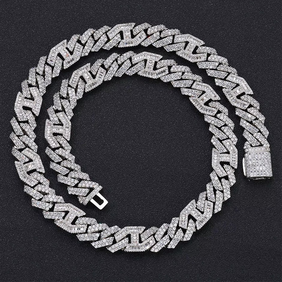 18K White Gold-Filled Cuban Necklace with Simulated Diamonds - 60.9cm