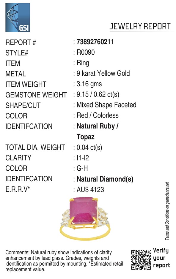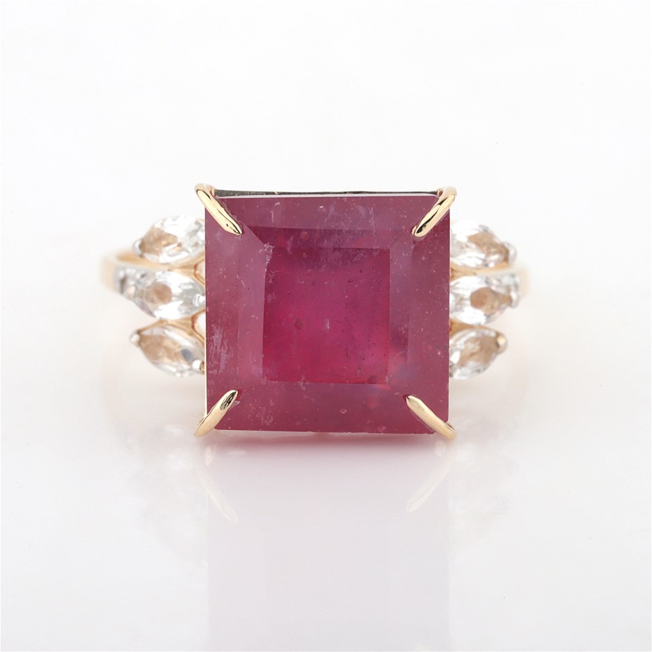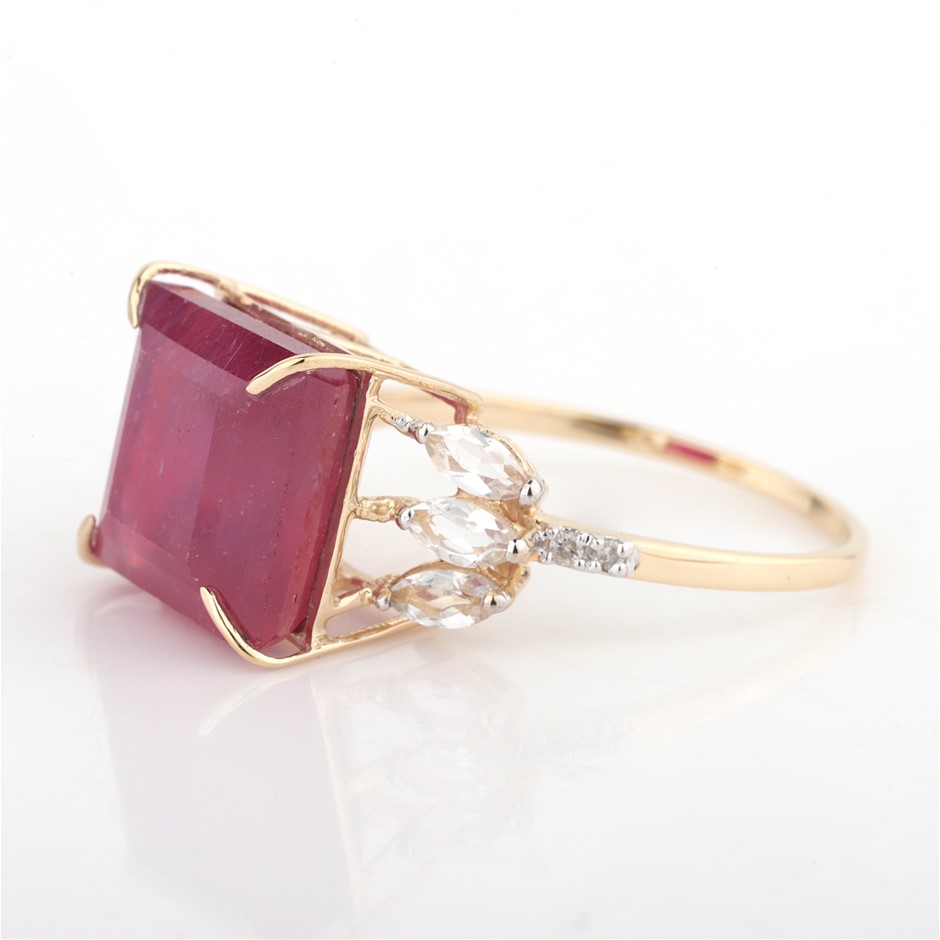 Yellow Gold 9.15Ct Natural Ruby & Diamond Ring With Valuation