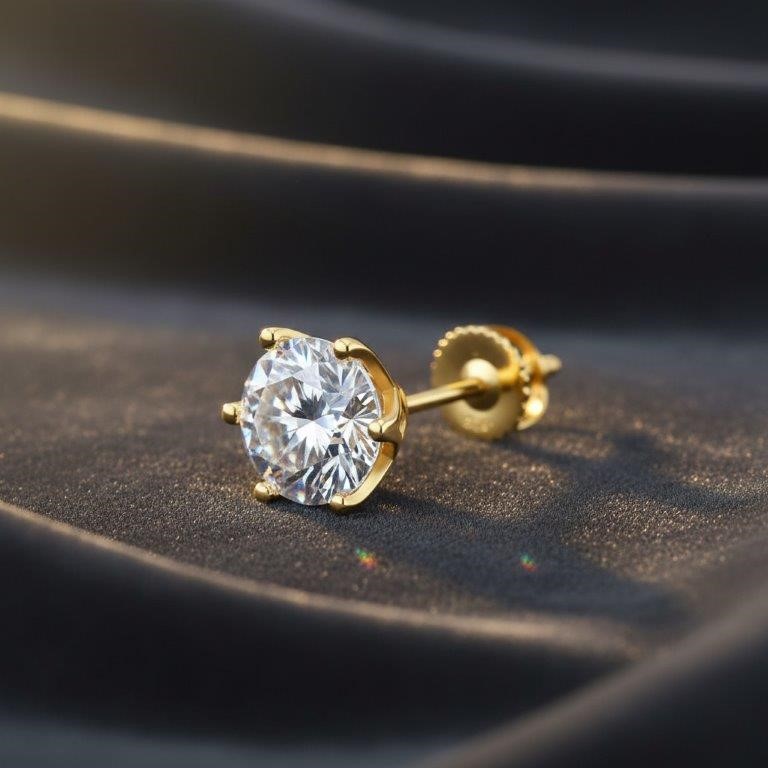 2.0ct GRA Moissanite white 18k Solid Yellow Gold Vermeil Earring