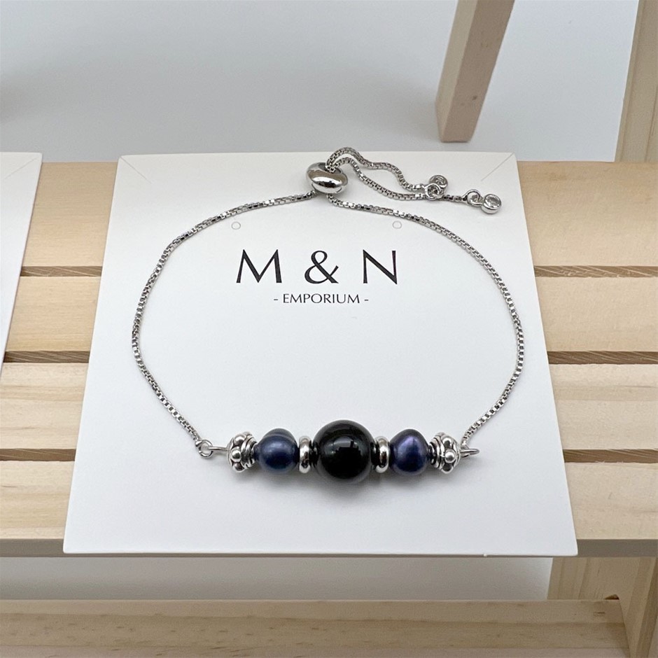 • Stone: Black Agate: 8mm. Freshwater Pearls: 7-8mm