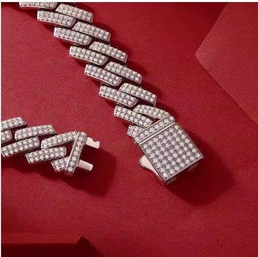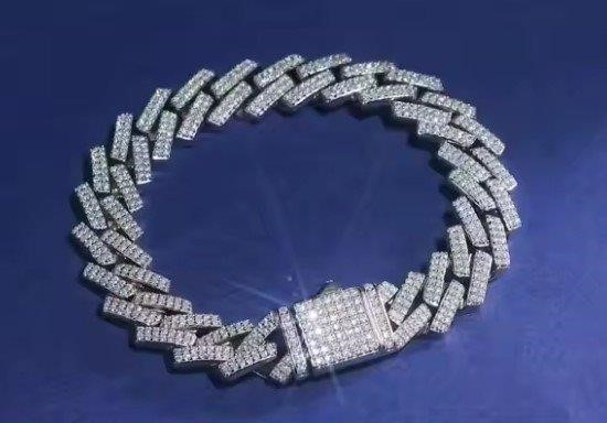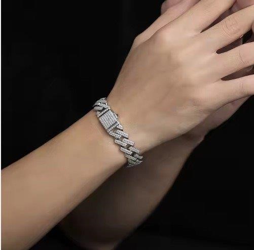 GRA Moissanite White Cut Cuban Bracelet-21cm-7mm (925 Sterling Silver)