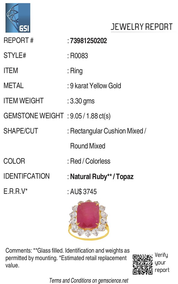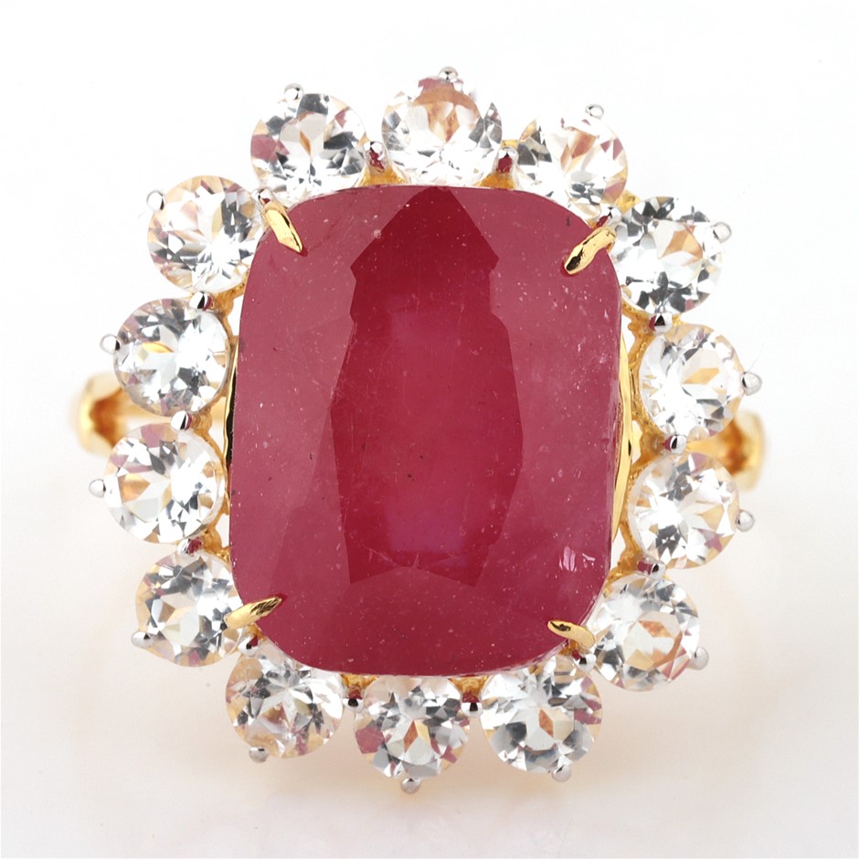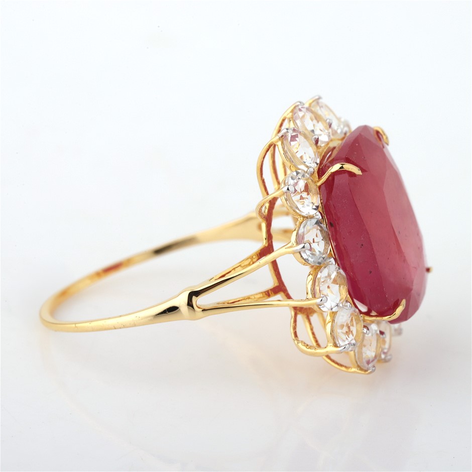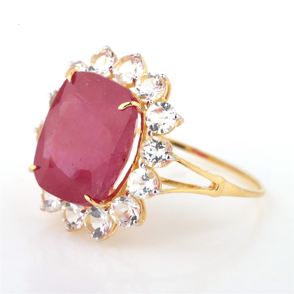Yellow Gold Natural Ruby / Natural White Topaz Ring Valuation