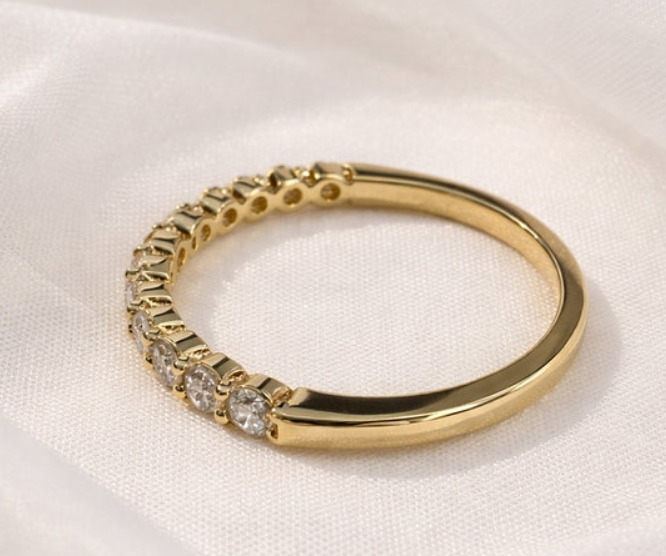 0.66ctw Diamond Half Eternity Ring 14K Gold on Solid Sterling Silver