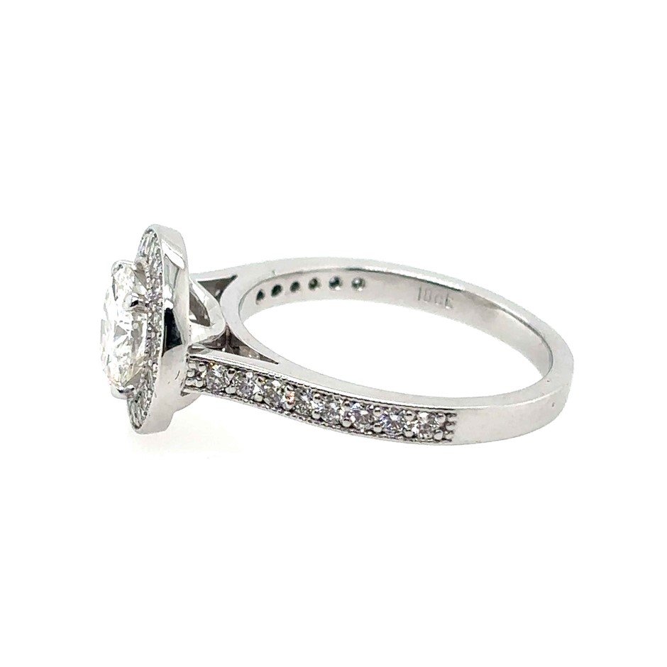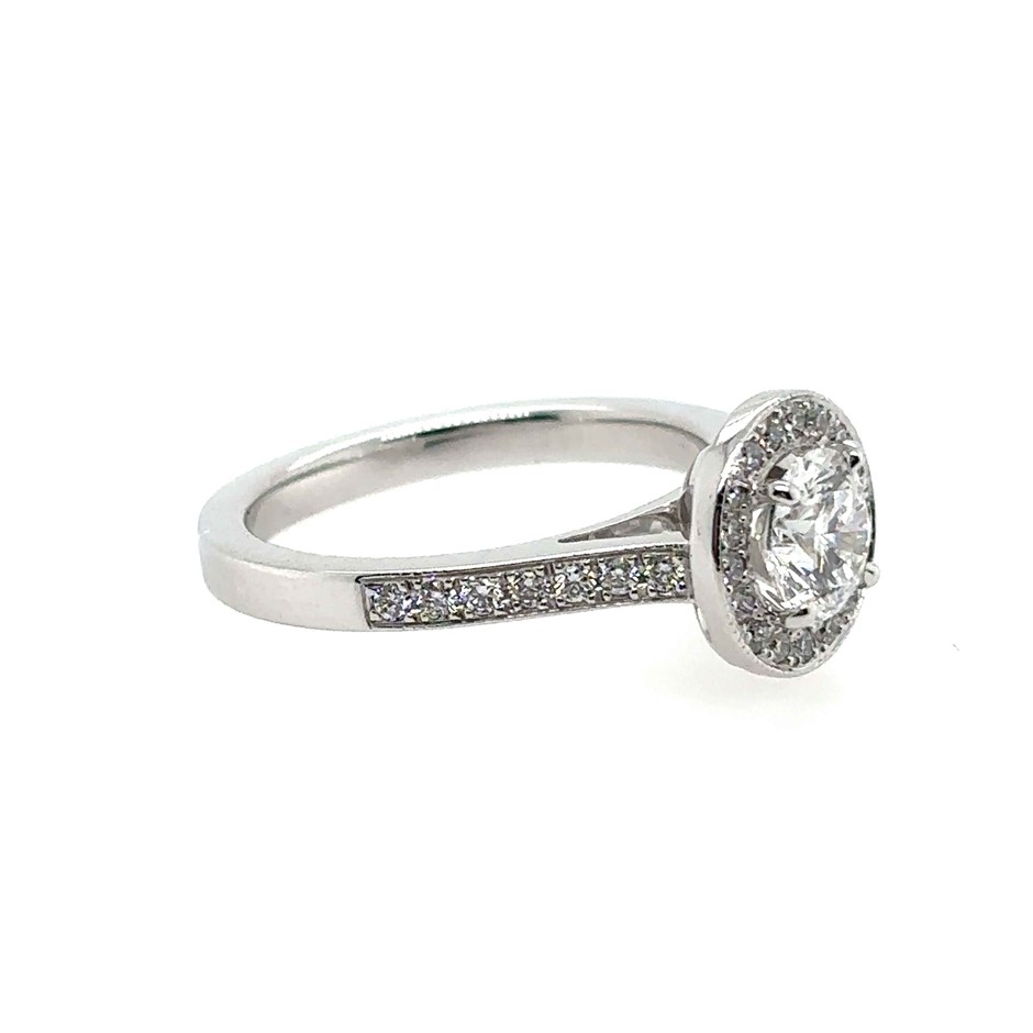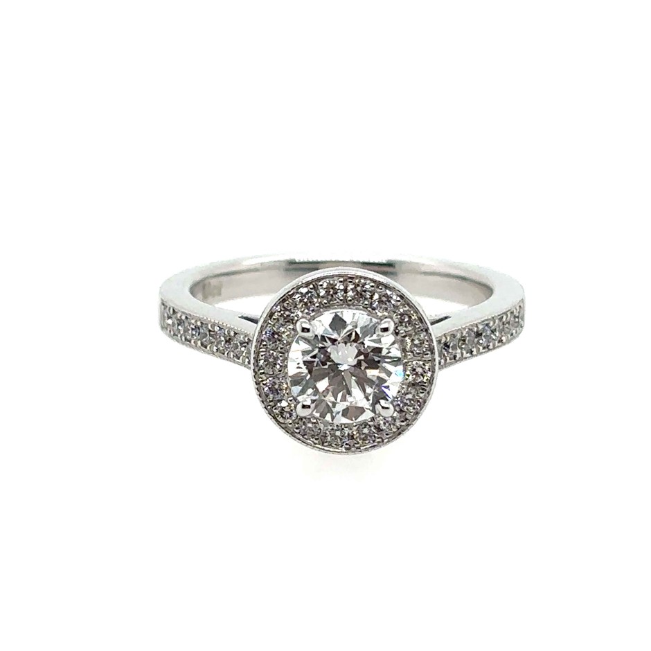 0.71ct Centre Round Stone Dia. D/SI1 With GIA Cert. & 0.35ct 31 Stones Round Dia. E-F/VS Ring 18K White Gold