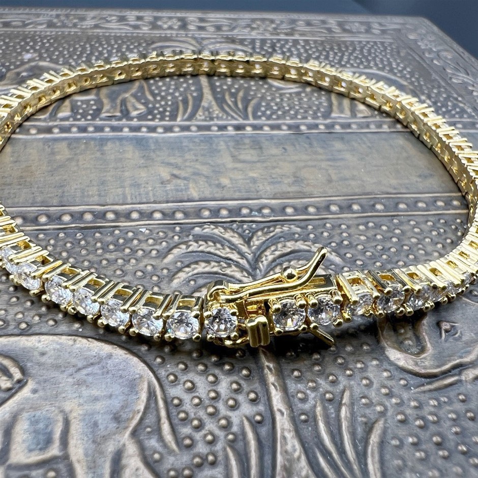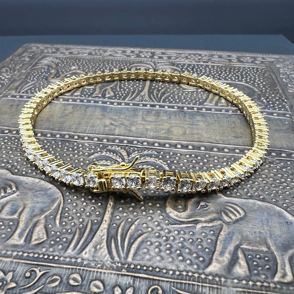 Opulent Galleria - 18K Gold-Filled Tennis Bracelet with Round Facet Cut Simulated Diamonds – 20.3cm