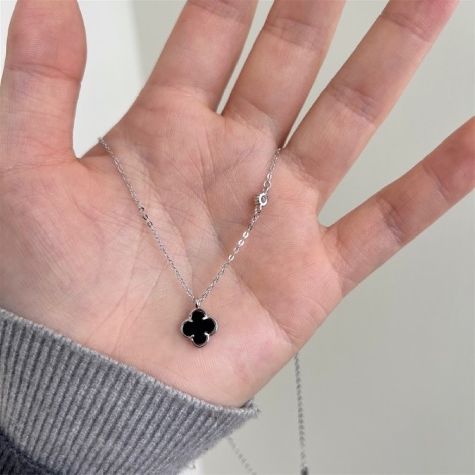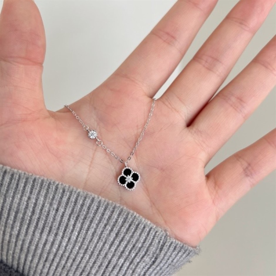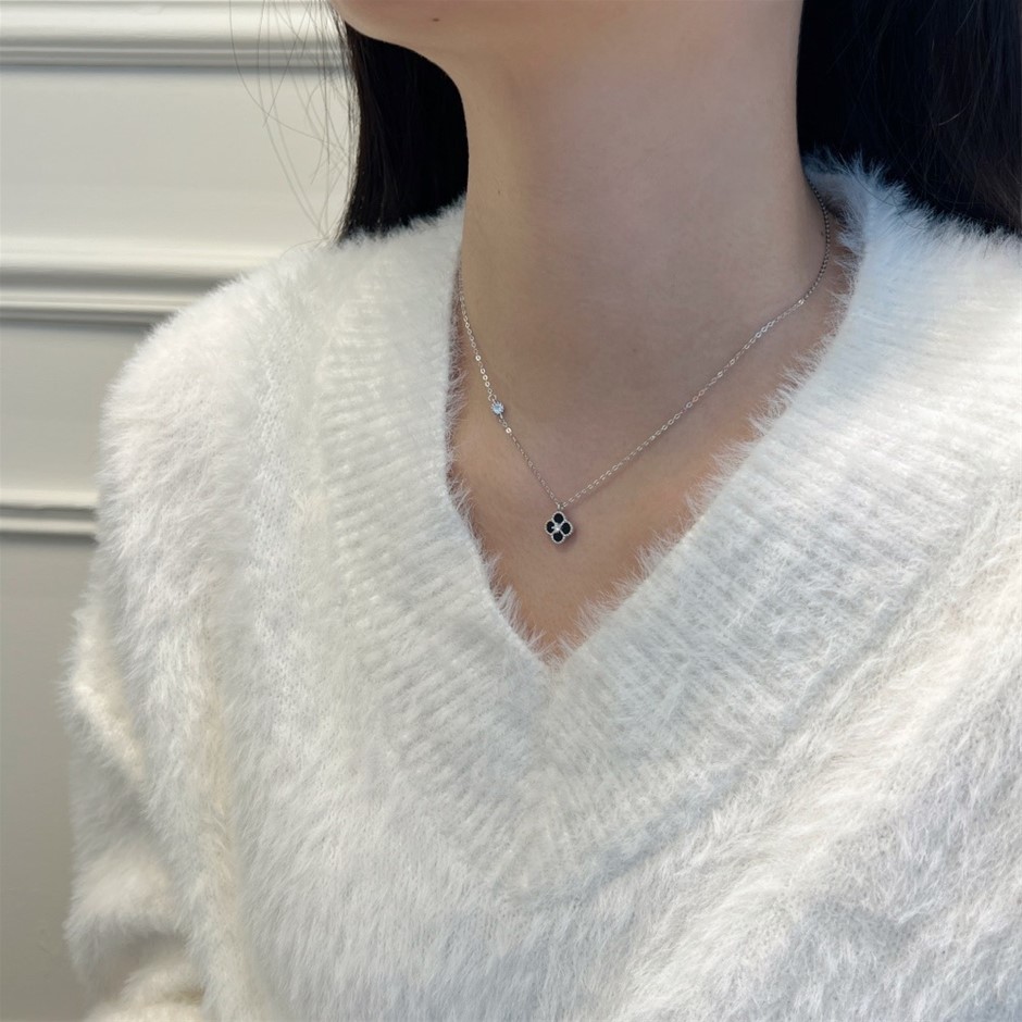 0.13ct GRA Certified Moissanite & White Shell Clover Pendant Necklace