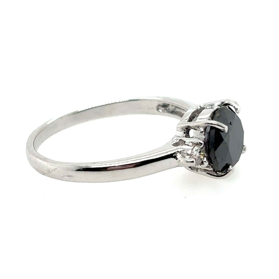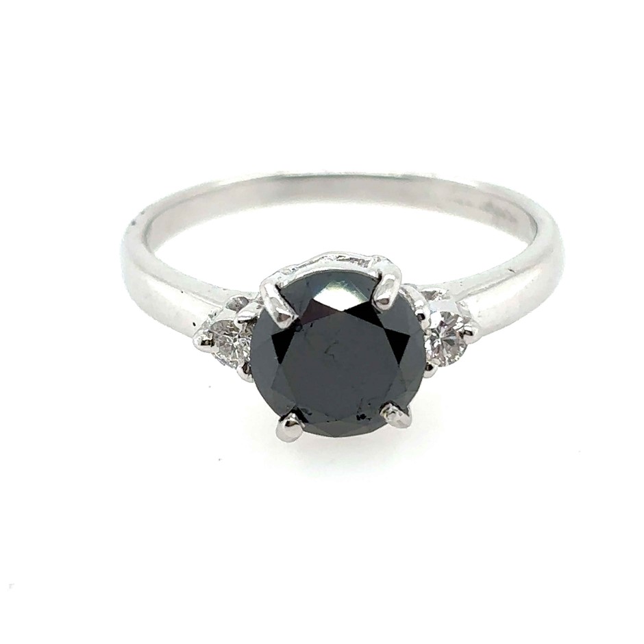 1.70ct Round Treated Black Dia. & 0.06ct 2 Stones Round White Dia. SI/G Ring 18K White Gold