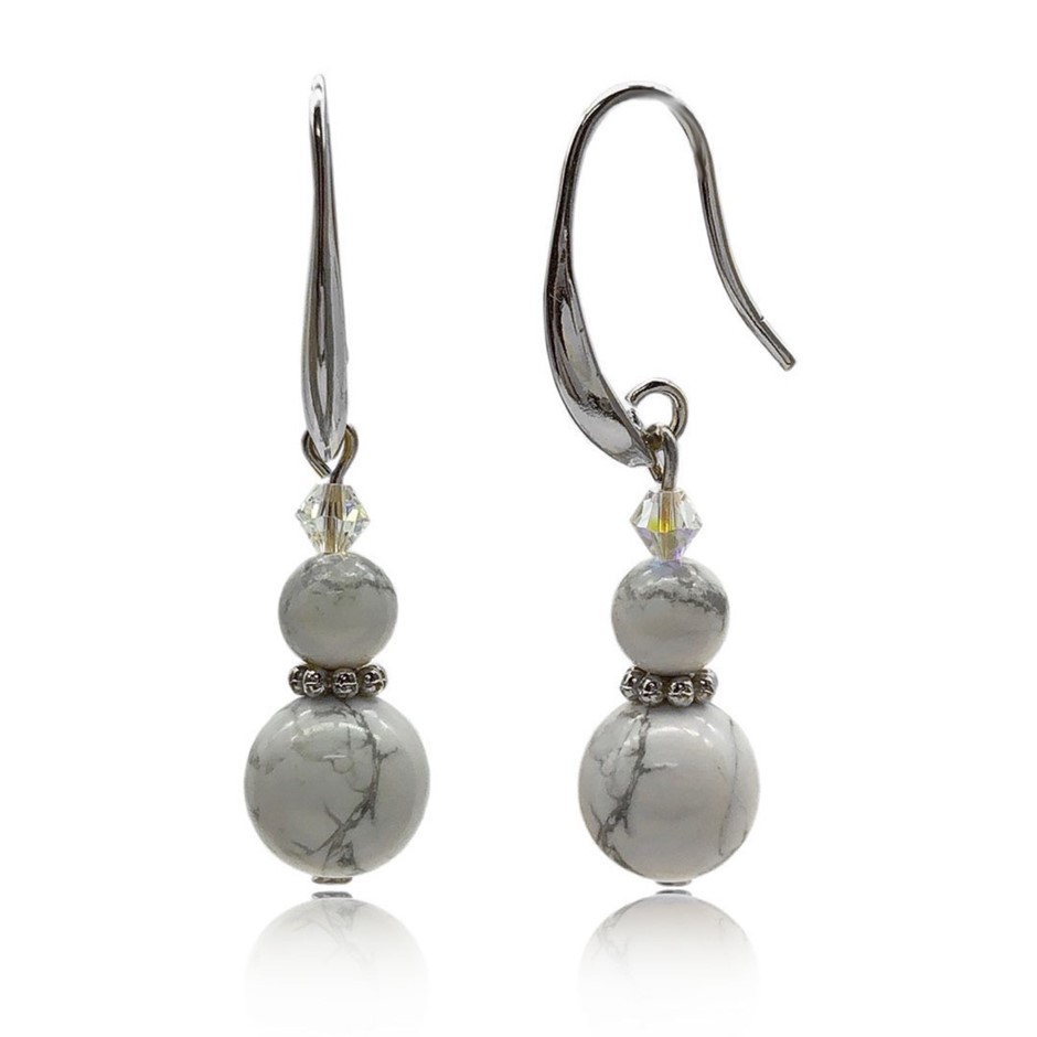 Howlite & Swarovski® Crystal Real Platinum Plated Earrings