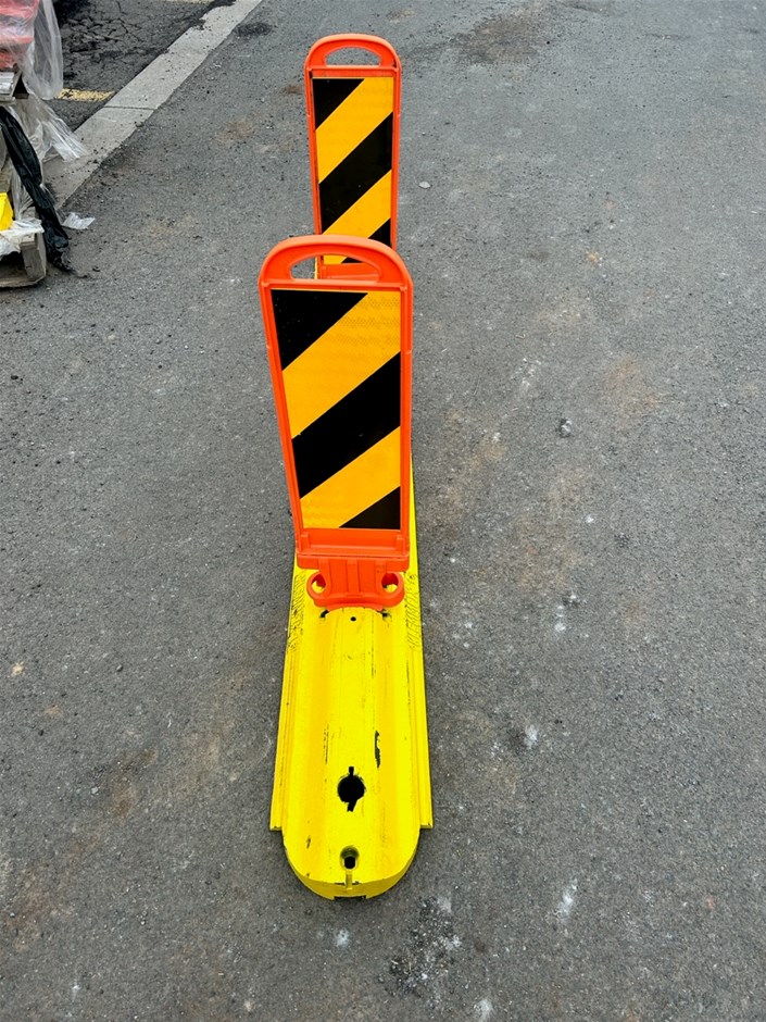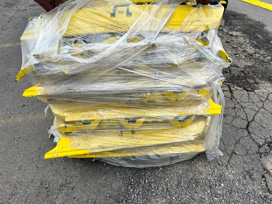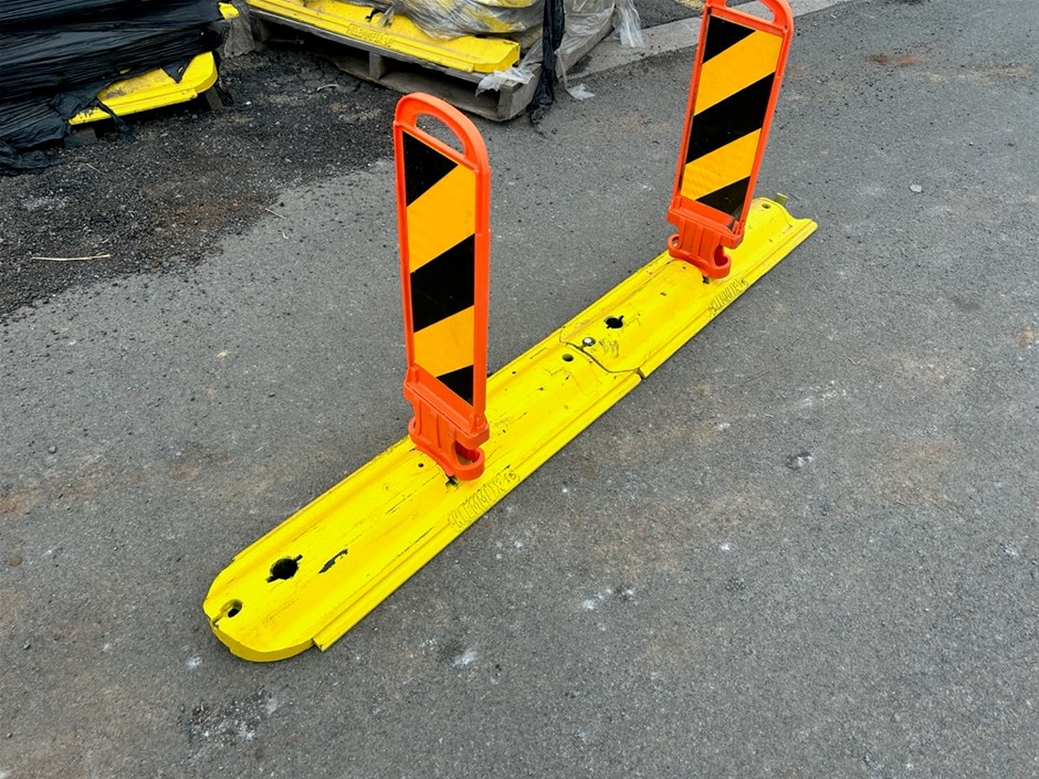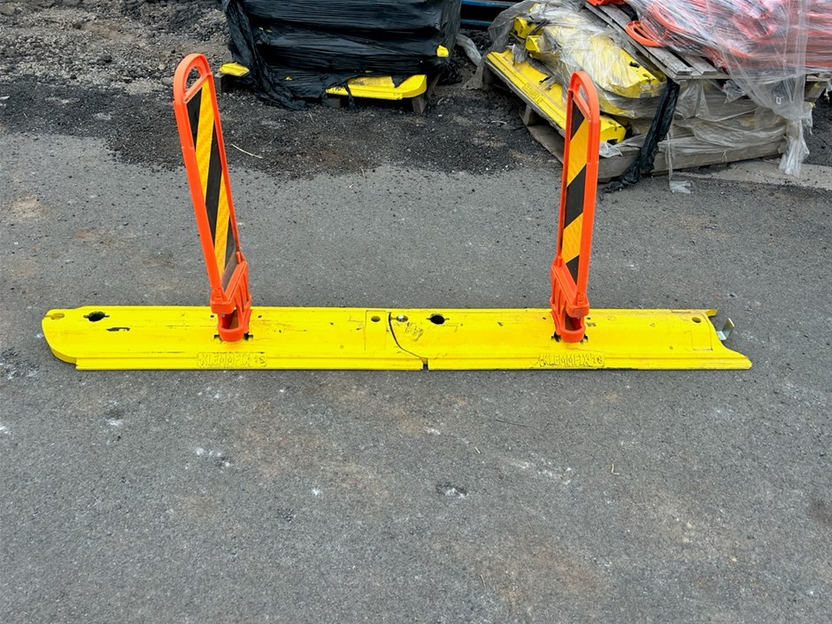• Large quantity of Assorted Klemmfix Traffic Lane Separators with Bases. Lane Separators Dim 780 x 220 mm(w). Bases Dim 2160 x 280 mm (w).