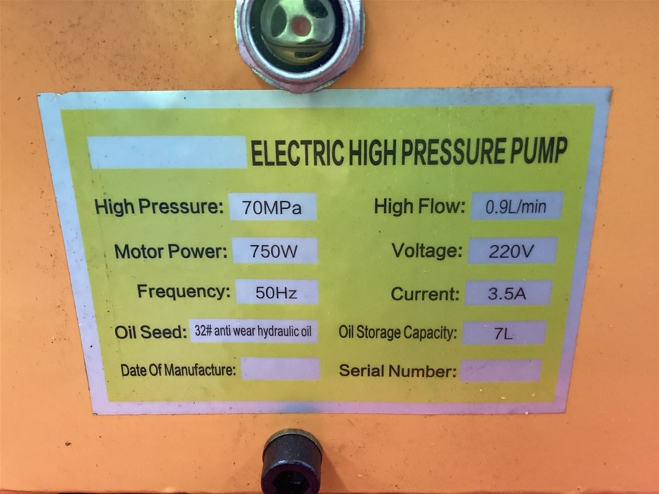 • Electric High Pressure Pump. 240 Volt Plug.