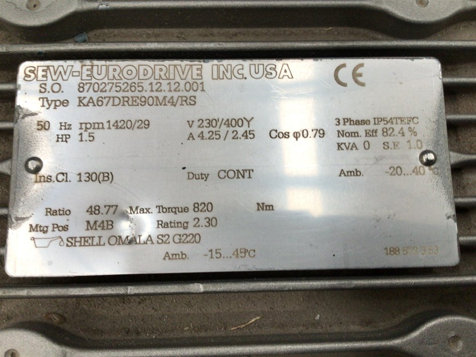 | Part of Sale | No Reserve SEW Drive Motors, Gearboxes, Servo Motors- Vic | ||||||||||