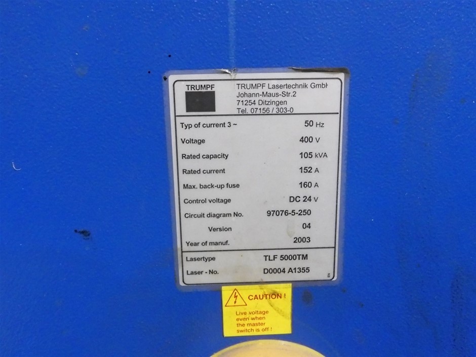 Part of Sale Trumpf TLF 5000TM CNC Laser Cutting System