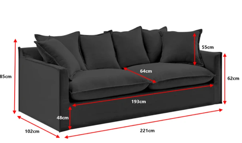 BROSA Palermo 3 Seater Sofa (Night Black) NB: More Grey in Person, Photo as