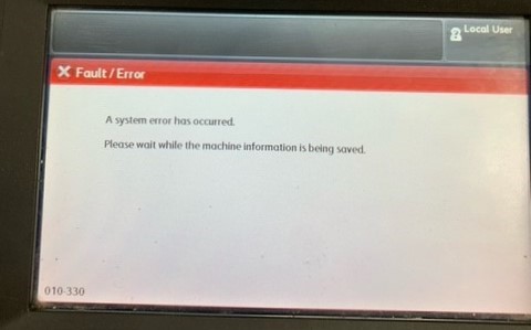 Machine is currently not working with an error code 10.330