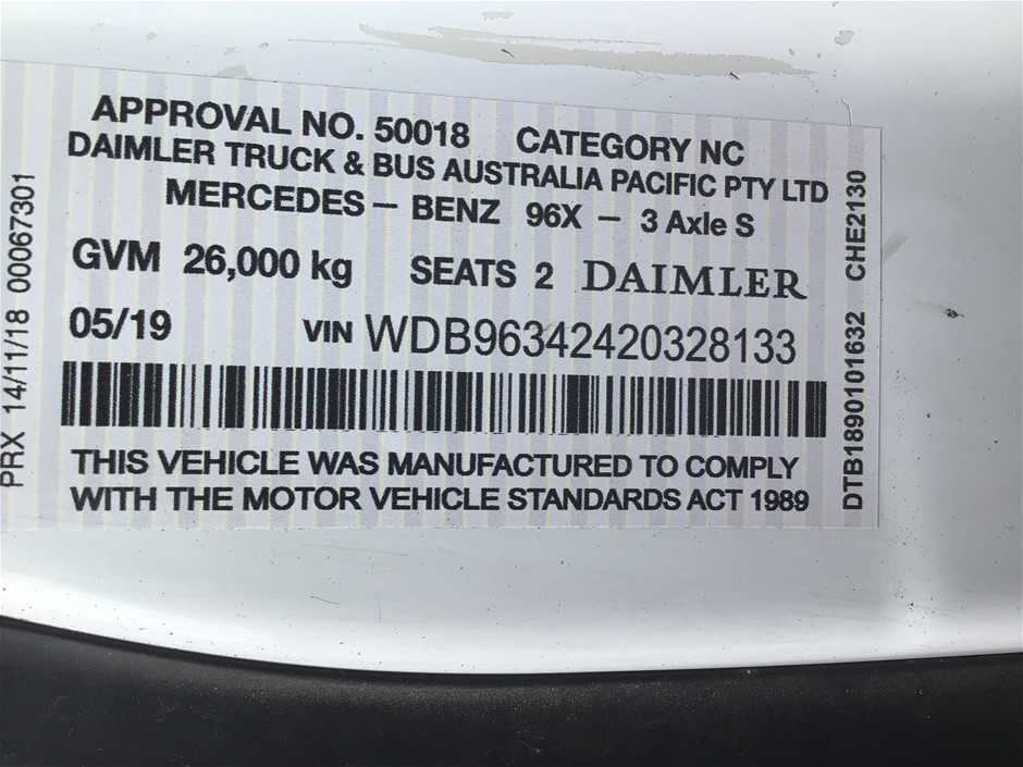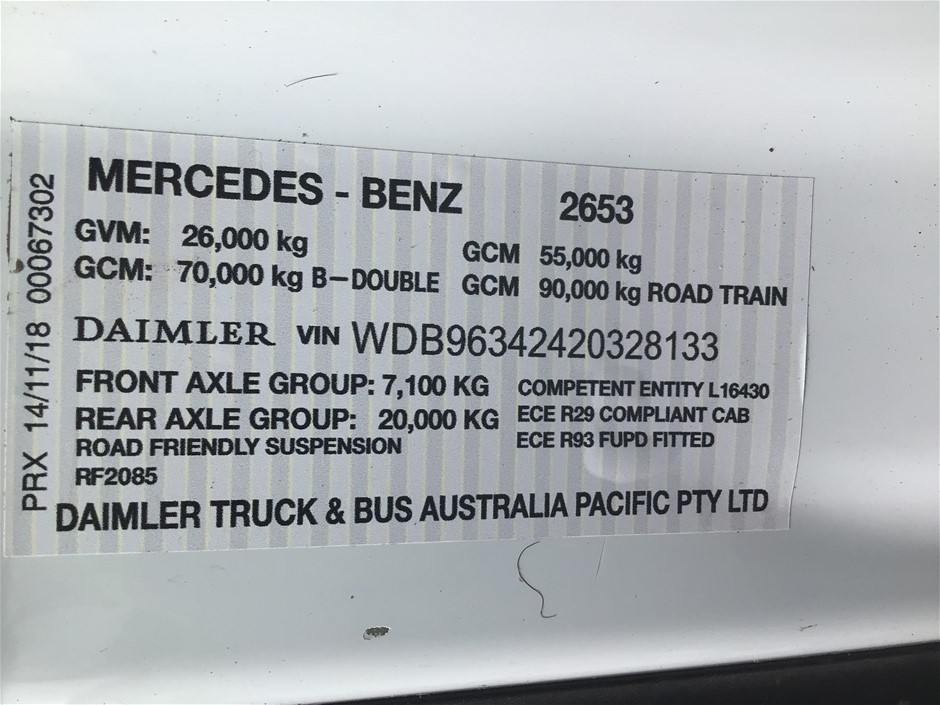 2019 Mercedes Actros 6 x 4 Prime Mover Truck